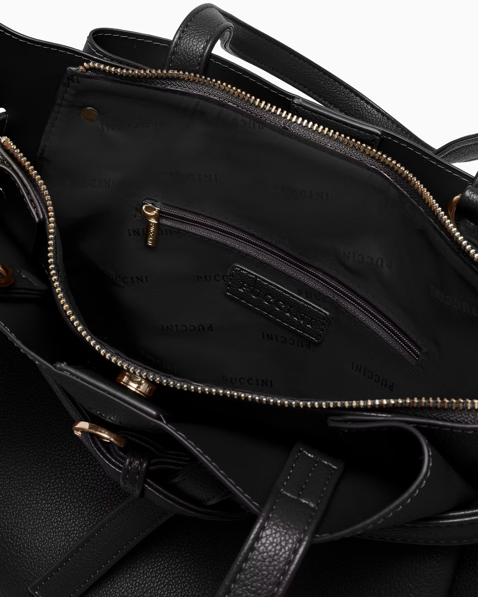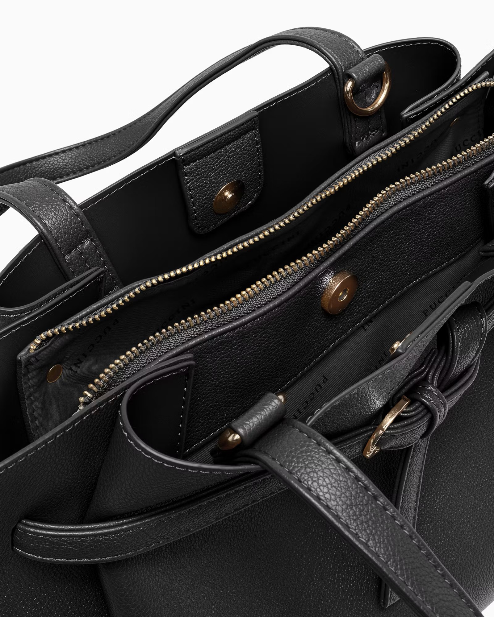 Ta czarna shopperka PUCCINI idealnie sprawdzi się dla kobiet, które szukają pojemnej, uniwersalnej i eleganckiej torebki na co dzień.