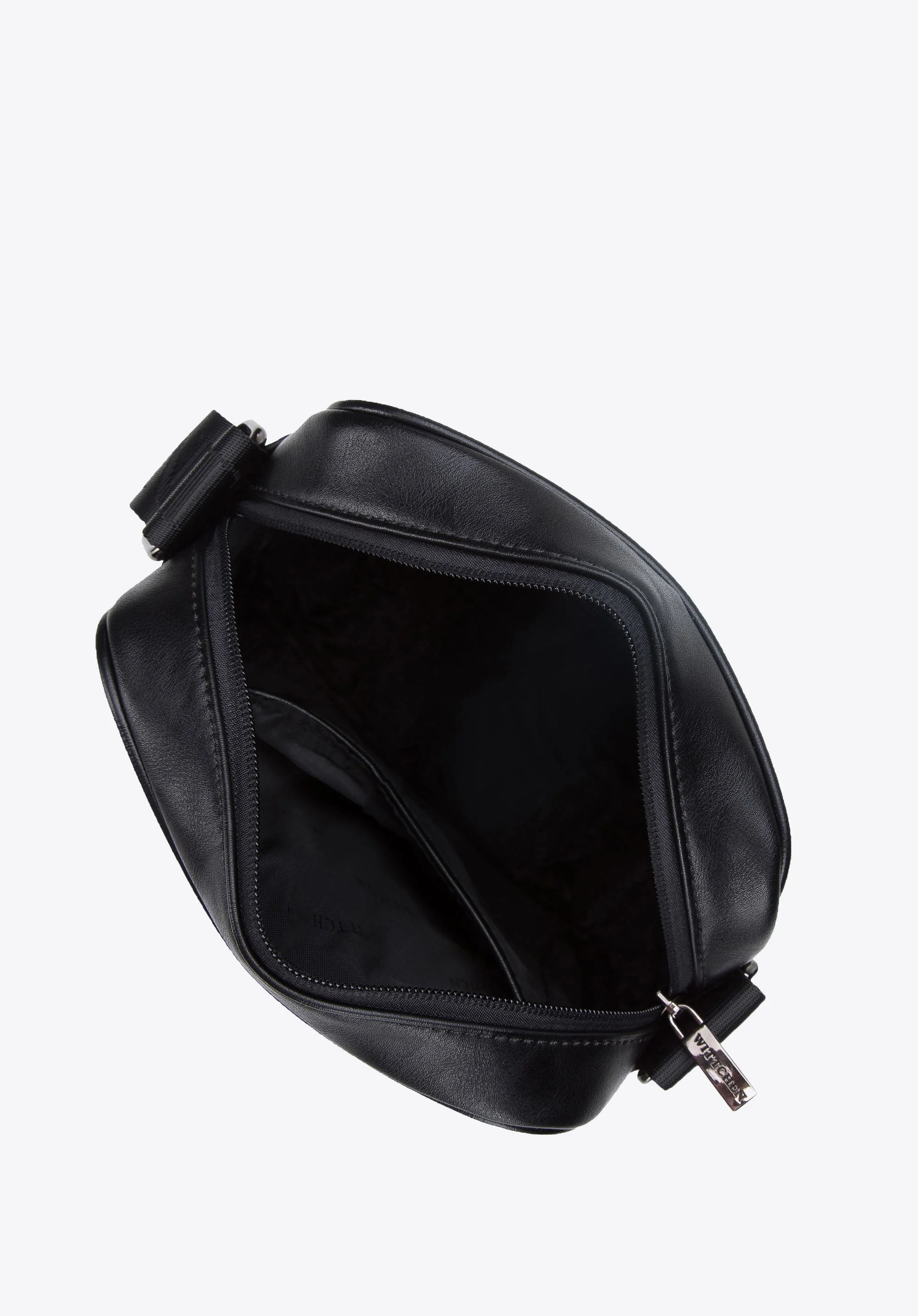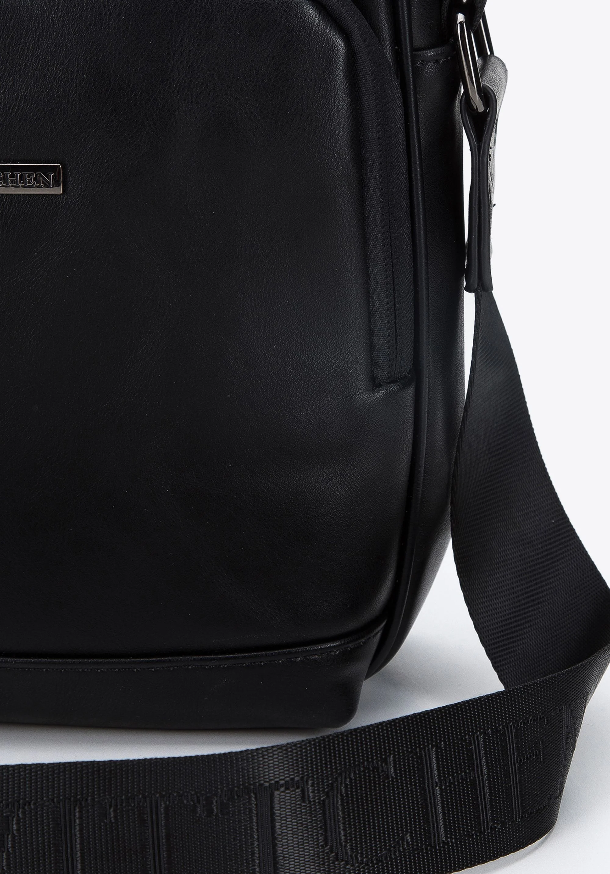Czarna torba męska listonoszka ze skóry ekologicznej to akcesorium, o które warto wzbogacić swoją garderobę. Jej klasyczny fason gwarantuje, że będzie świetnie prezentować się z większością outfitów, a Ty zawsze będziesz wyglądać stylowo. Listonoszka jest średniej wielkości i zamykana jest na zamek. Wysoka jakość skóry ekologicznej, z której została wykonana, zapewnia komfortowe użytkowanie przez kilka sezonów. W komorze głównej łatwo zmieścisz niezbędne rzeczy osobiste, których potrzebujesz w ciągu dnia, będąc poza domem np. telefon, portfel i klucze. Znajdziesz tu 2 kieszonki, jedną otwartą i drugą na zamek. Bezpieczna, zewnętrzna kieszonka na suwak posłuży za schowek dla drobnych rzeczy, które warto mieć pod ręką, a otwartą kieszeń od strony ciała wykorzystasz na inne drobiazgi. Regulowanej długości pasek z wytłoczonym napisem WITTCHEN gustownie podkreśla klasę modelu. Jeśli cenisz funkcjonalne dodatki zdecyduj się na męską listonoszkę WITTCHEN 94-4P-010-1!