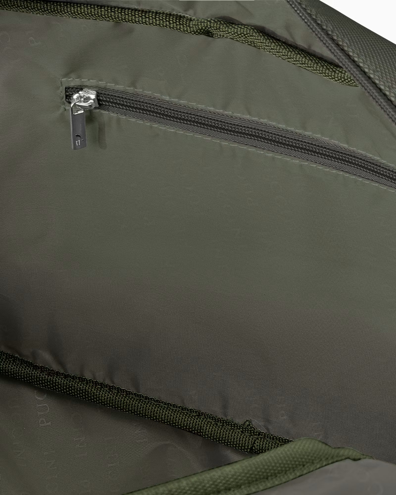 Wnętrze torby zawiera jedną główną komorę oraz dodatkową kieszonkę na zamek, idealną na drobiazgi. Dodatkową zaletą jest praktyczna komora na dnie torby – świetna do przechowywania butów lub innych przedmiotów, których nie chcesz pakować w głównym bagażu. Z przodu torby znajduje się wytłoczone logo PUCCINI, a wszystkie metalowe elementy w srebrnym odcieniu podkreślają nowoczesny charakter modelu.