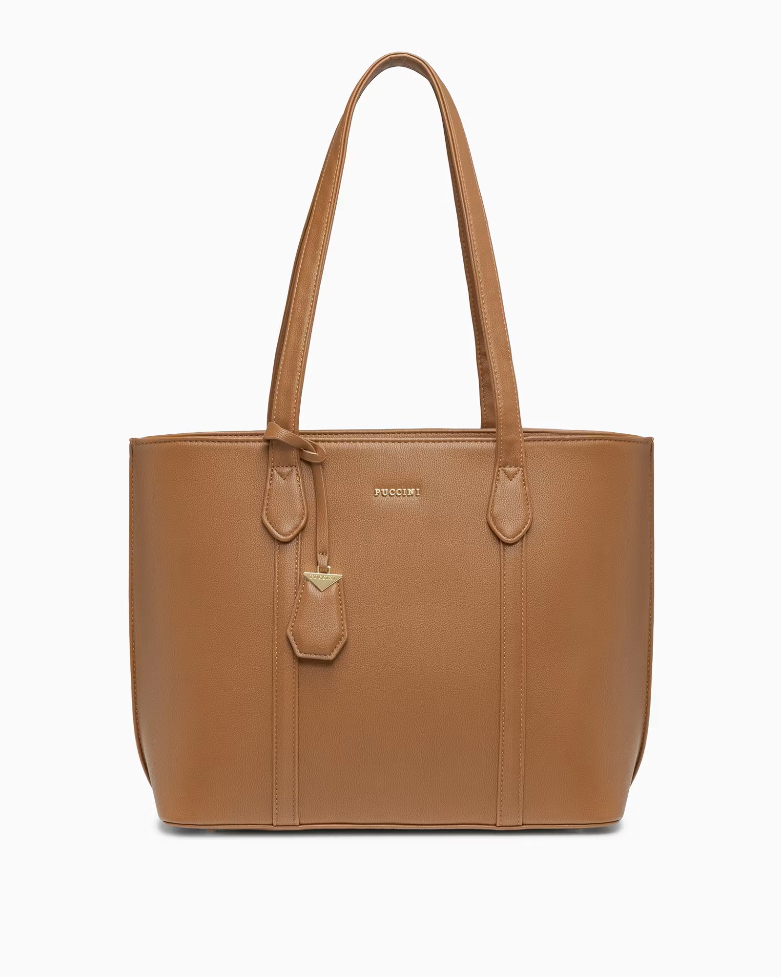 Torebka posiada długie uchwyty, które umożliwiają komfortowe noszenie na ramieniu lub przedramieniu. Na froncie znajduje się subtelne logo PUCCINI, podkreślające markowy charakter produktu. Dodatkowym atutem są cztery nóżki ochronne na spodzie, które zabezpieczają torebkę przed zabrudzeniem i uszkodzeniami.