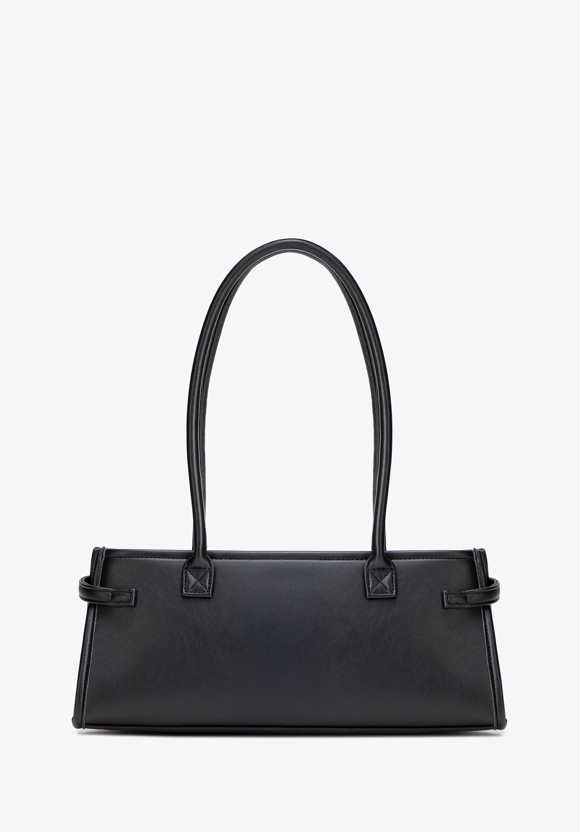 Wykonana z wysokiej jakości skóry ekologicznej, torebka wyróżnia się gładką fakturą oraz usztywnianą konstrukcją, która pozwala zachować jej perfekcyjny kształt niezależnie od zawartości. Smukła, wydłużona forma typu bagietka oraz dekoracyjny pasek z subtelną klamrą nadają jej wyrafinowanego charakteru.