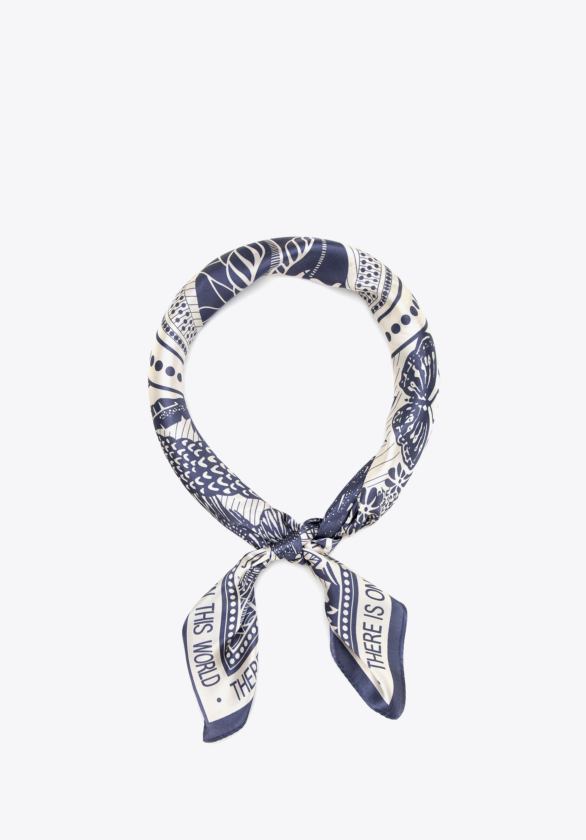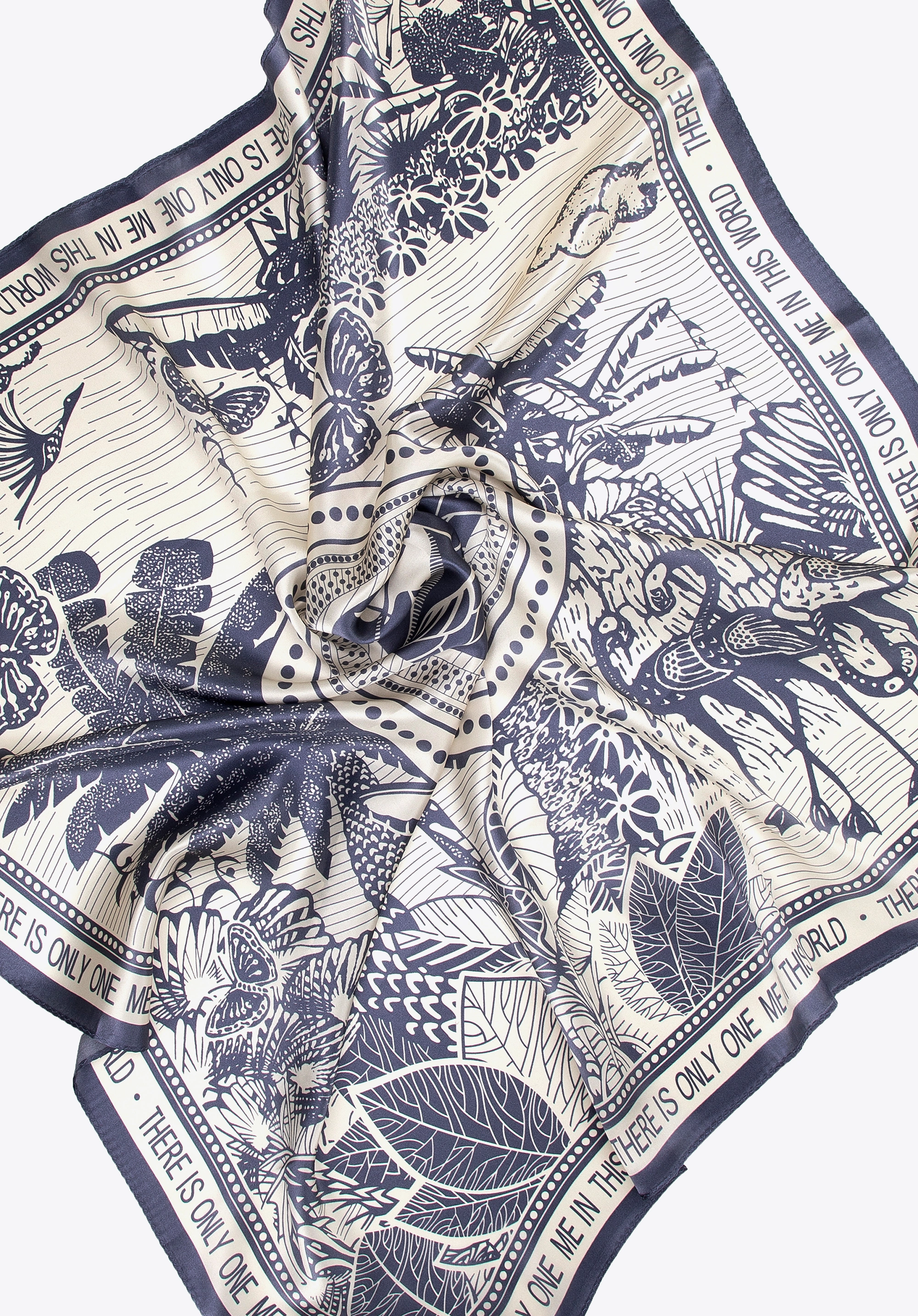 Jedwabna chusta damska WITTCHEN 103-7D-S02-X6 motyw natury kremowo-granatowa