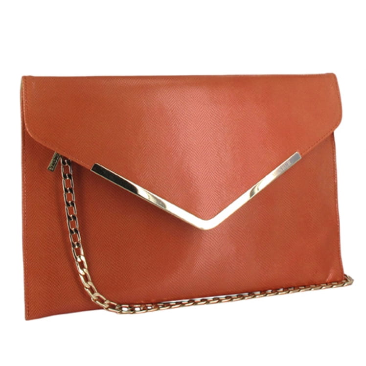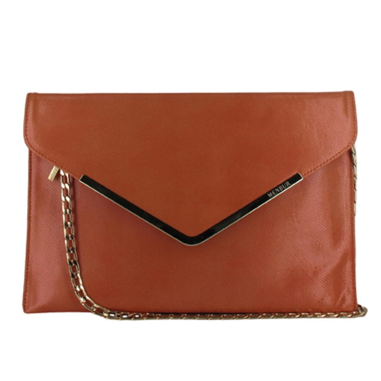 Wizytowa kopertówka MENBUR 761100035, średniej wielkości w kolorze koralowym, zamykana na magnes pod klapą. Wykonana jest ze skóry licowej z fakturą jaszczurki. Wewnątrz znajduje się jedna komora główna, a w niej kieszonka zamykana na suwak. Metalowe elementy mają kolor złoty. Torebka jest bardzo elegancka, doskonała na różne okazje. Przeznaczona jest do noszenia w dłoni lub na ramieniu.