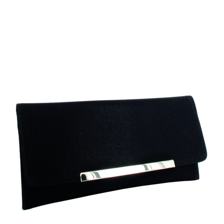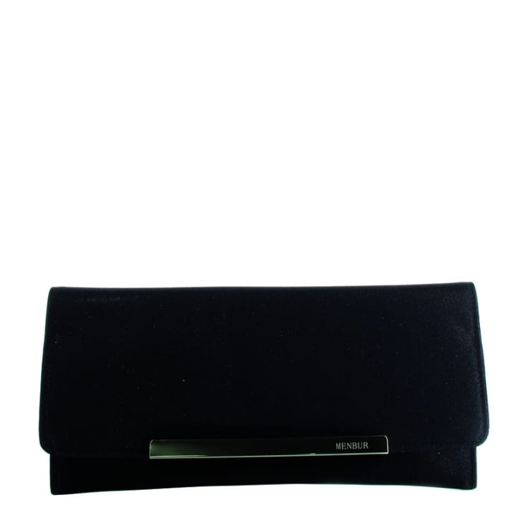 Wizytowa kopertówka MENBUR 830760001 w kolorze czarnym, zamykana na magnes pod klapą. Torebka w całości wykonana jest z połyskującego materiału. W środku znajduje się kieszonka zamykana na zamek. Metalowe elementy są w kolorze srebrnym. Torebka przeznaczona jest do noszenia w dłoni lub na ramieniu na łańcuszku.