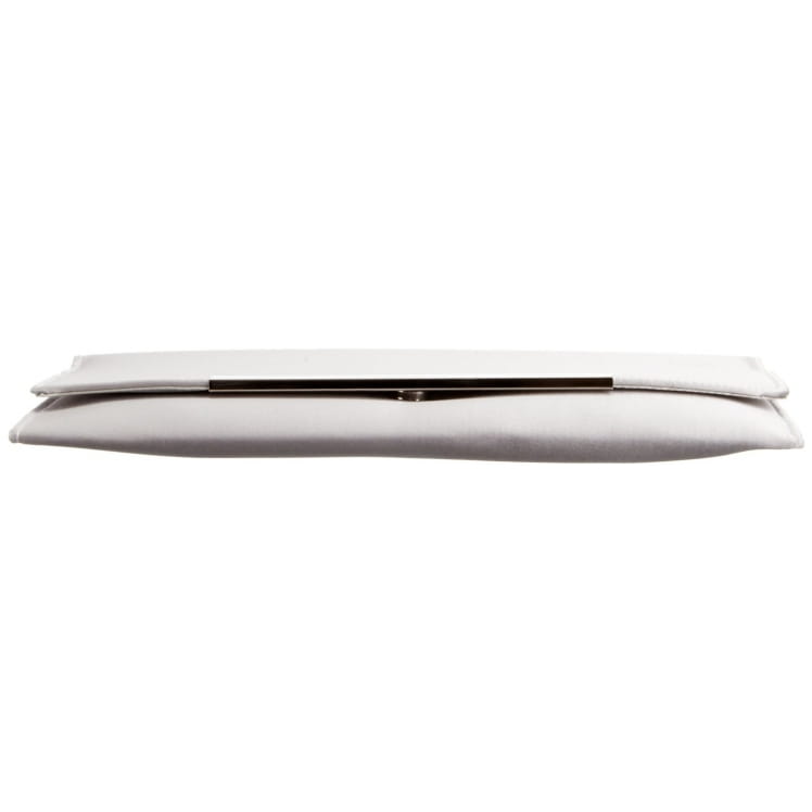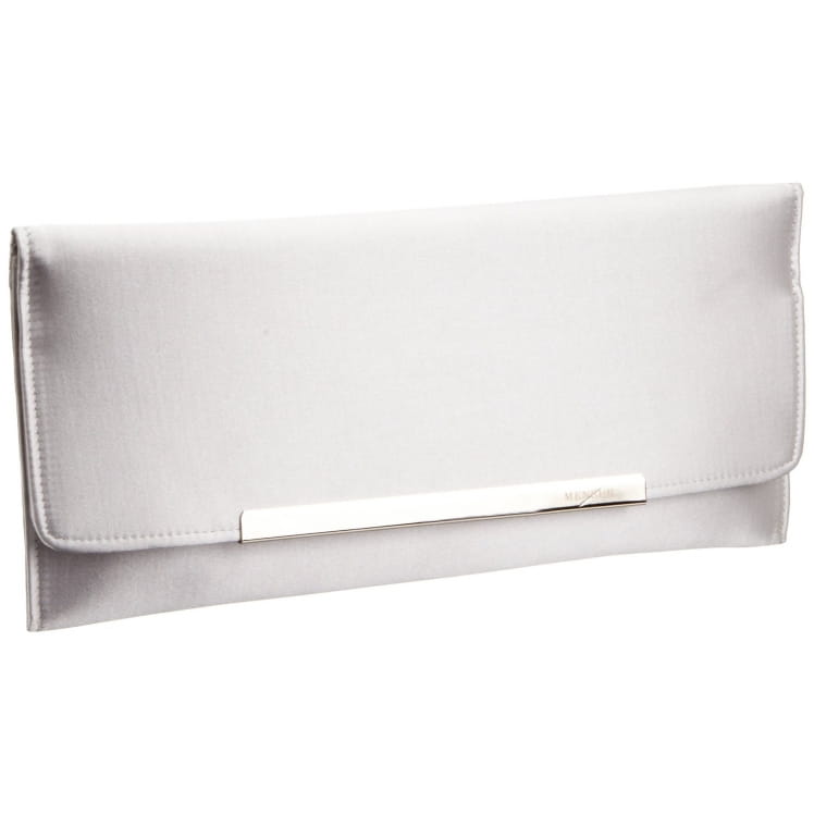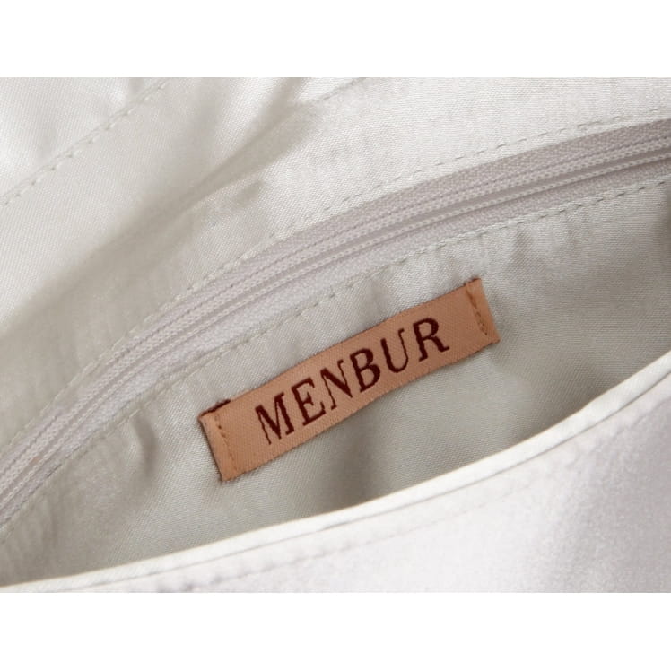 Wizytowa kopertówka MENBUR 831050090 w kolorze srebrnym, zamykana na magnes pod klapą. Torebka wykonana jest z satyny. Wewnątrz posiada jedna komorę z kieszonką zamykaną na zamek. Metalowe elementy są kolorze srebra. Torebka przeznaczona jest do noszenia w dłoni lub na ramieniu. Elegancki, bardzo wygodny model, który sprawdzi się przy różnych okazjach.