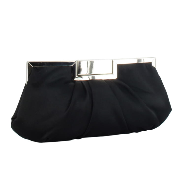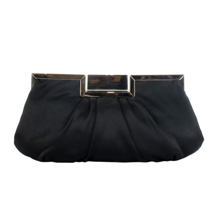 Satynowa kopertówka MENBUR 832480001 w kolorze czarnym. Prosty, klasyczny model, bardzo miękki w dotyku. Delikatne marszczenia satyny na przodzie podkreślają subtelną elegancję. Torebka jest jednokomorowa, zamykana na bigiel, a w środku posiada małą kieszonkę. Metalowe elementy są w kolorze srebra. Można ją nosić na ramieniu na łańcuszku lub w dłoni.
