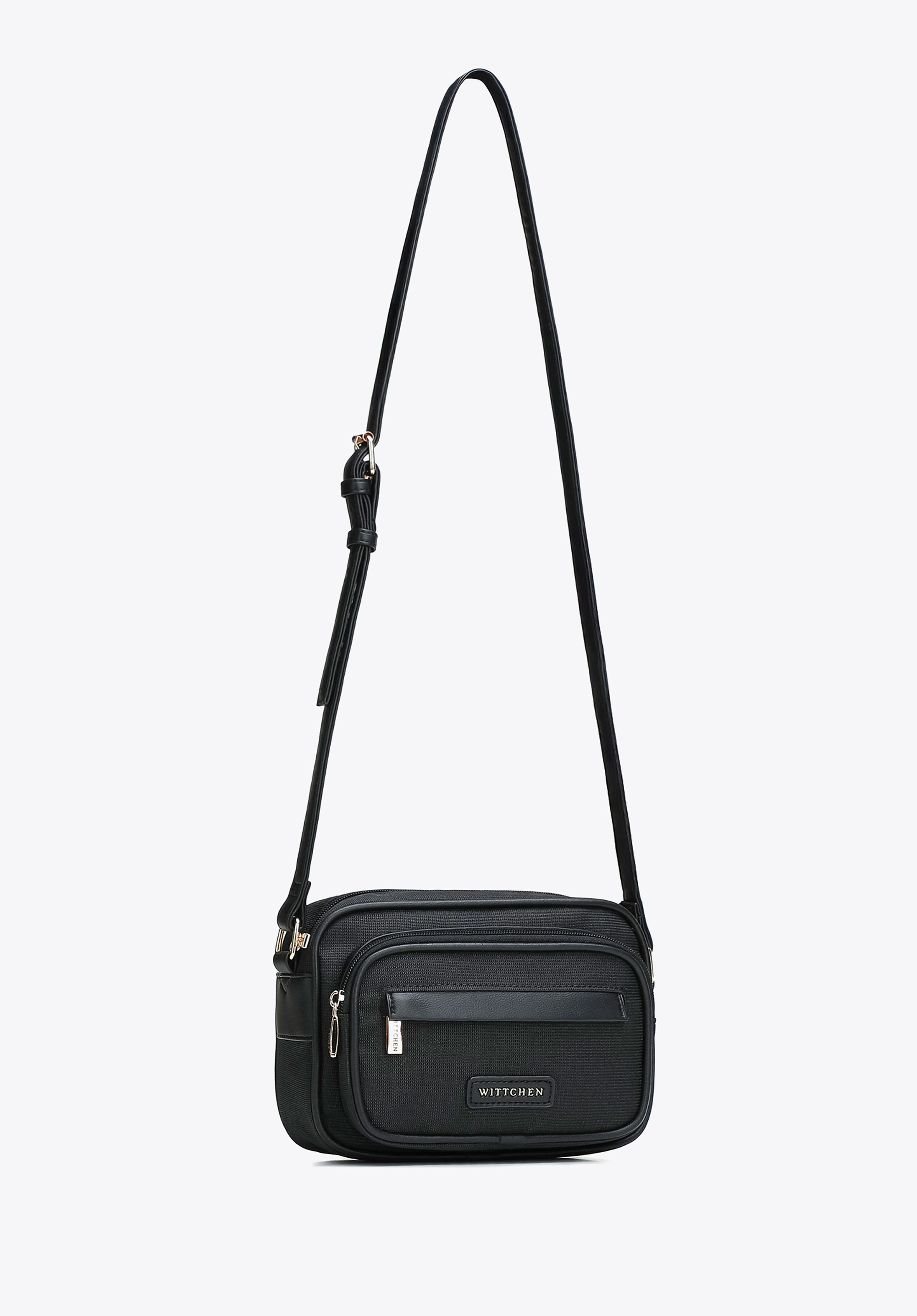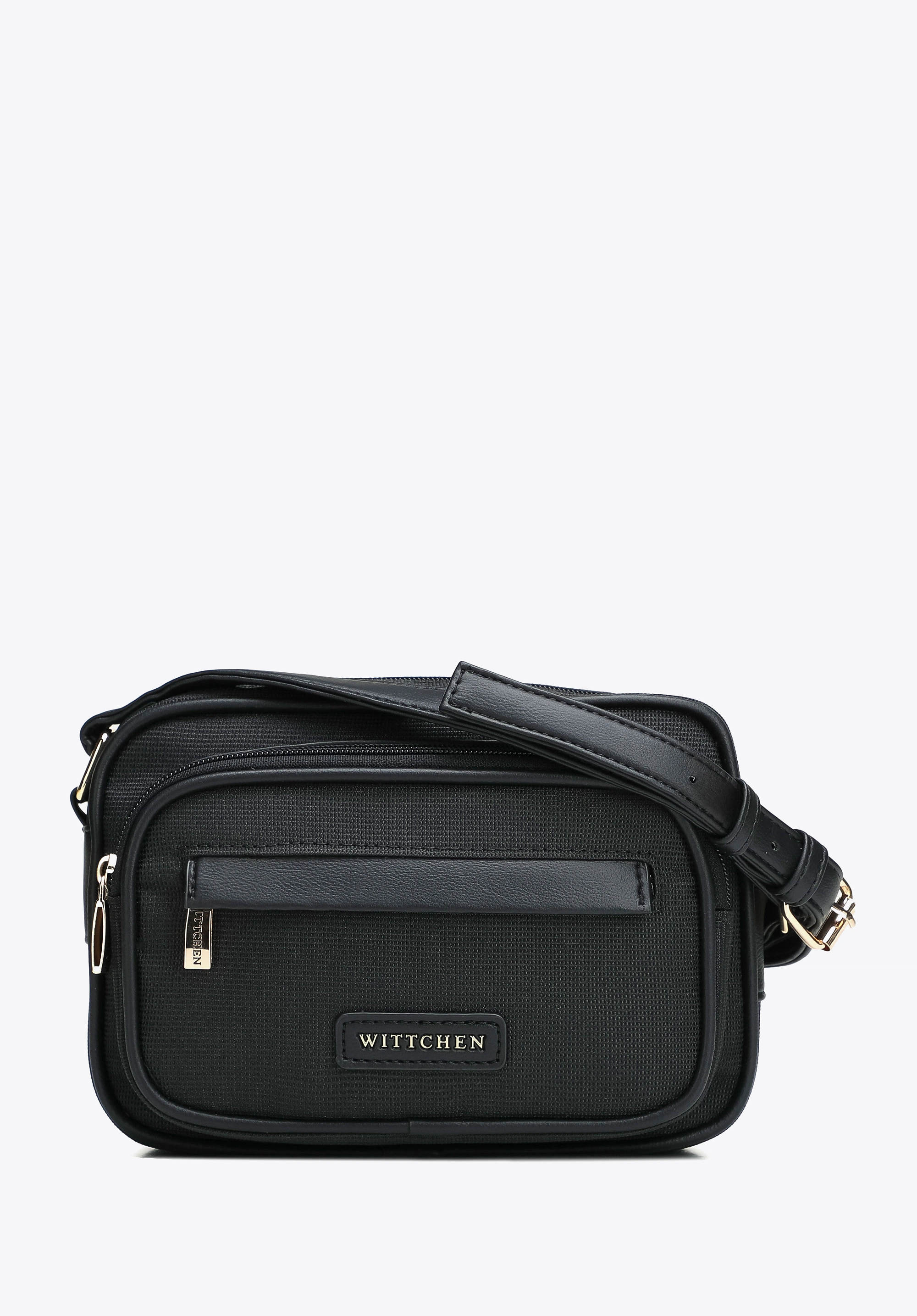 Torebka damska listonoszka WITTCHEN 102-4Y-402-1 to lekka i kompaktowa torebka na ramię, która zapewnia wygodę i doskonałą organizację podczas codziennych aktywności. Ponadczasowy, czarny kolor w połączeniu z eleganckimi elementami z ekoskóry sprawia, że model świetnie wpisuje się w nowoczesny, miejski styl.