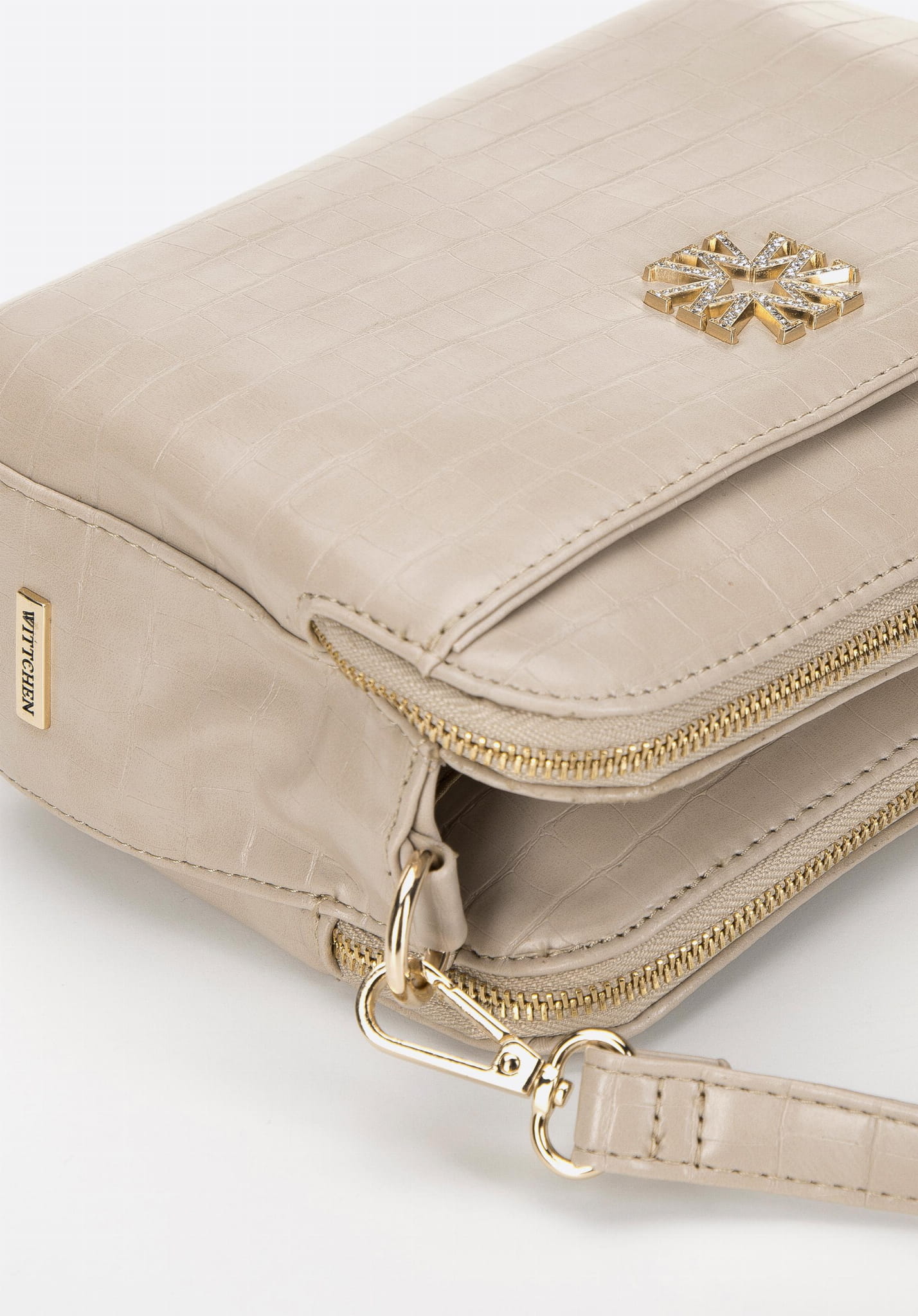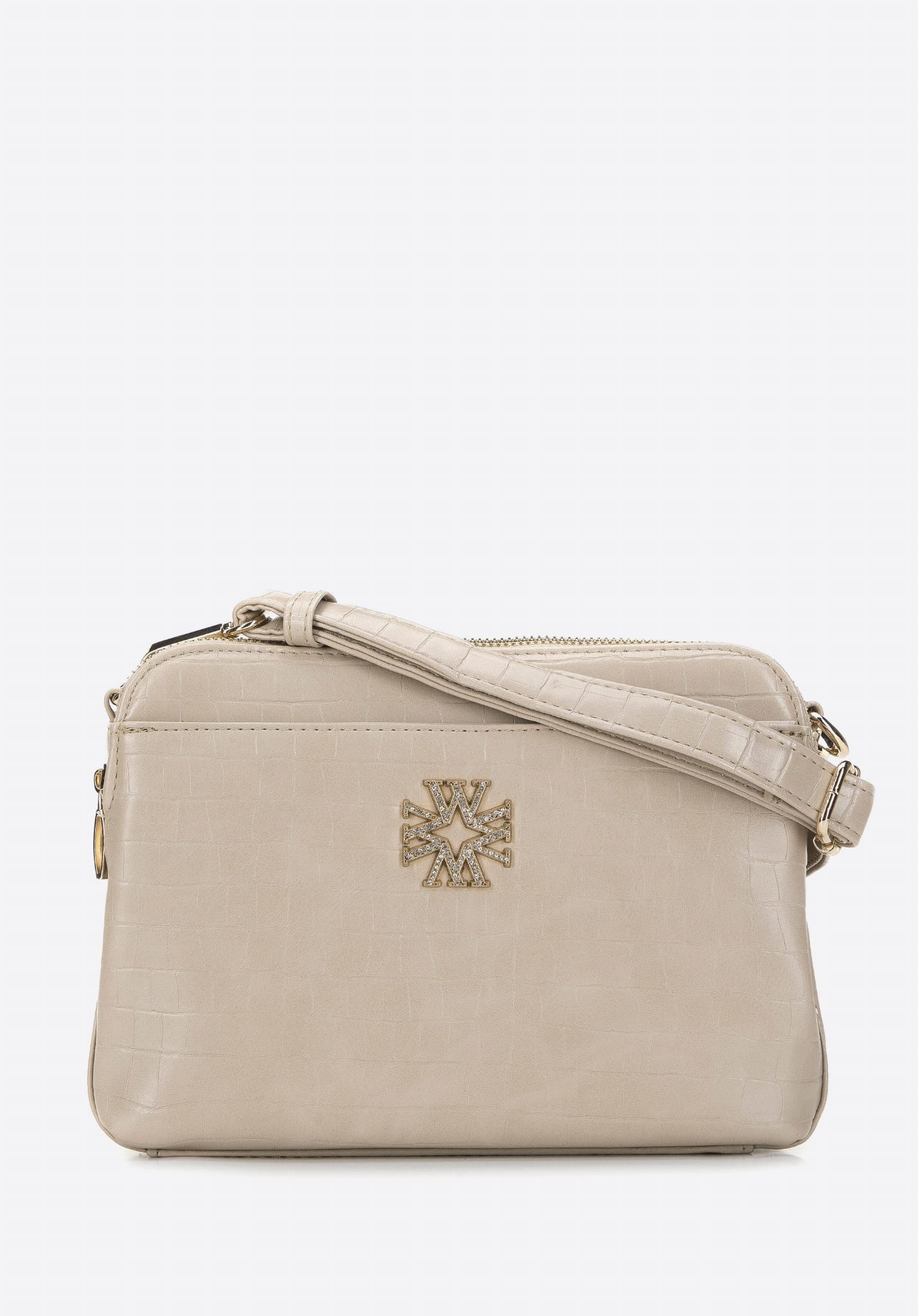 Wykonana z wysokiej jakości skóry ekologicznej o tłoczeniu croco, przyciąga wzrok i dodaje stylizacjom wyrafinowanego charakteru. Złote okucia podkreślają luksusowy wygląd, a trzy oddzielne komory ułatwiają organizację – bez problemu zmieścisz portfel, telefon, kosmetyki i inne drobiazgi.
