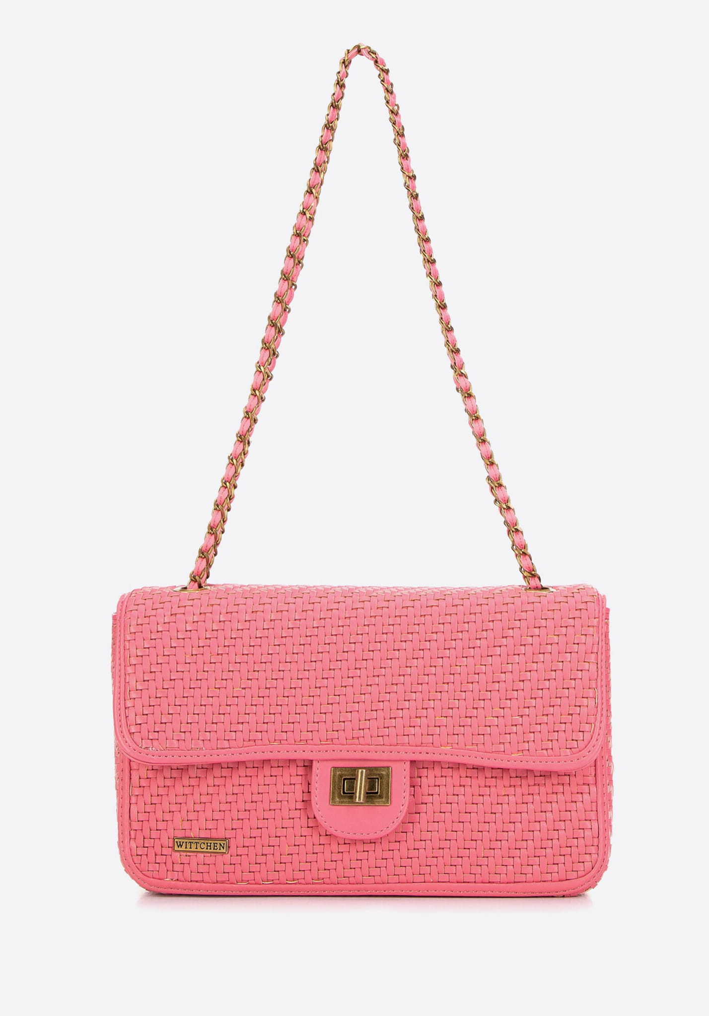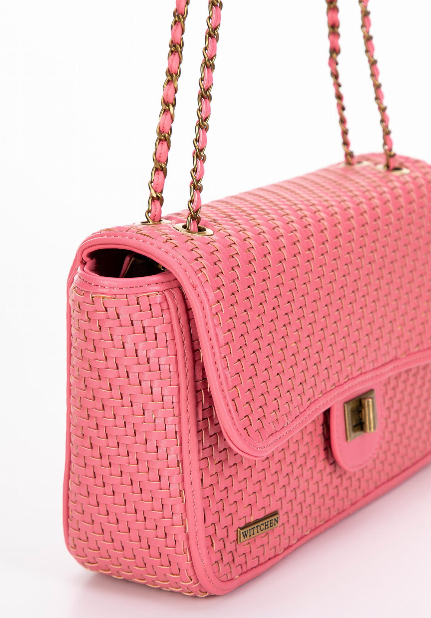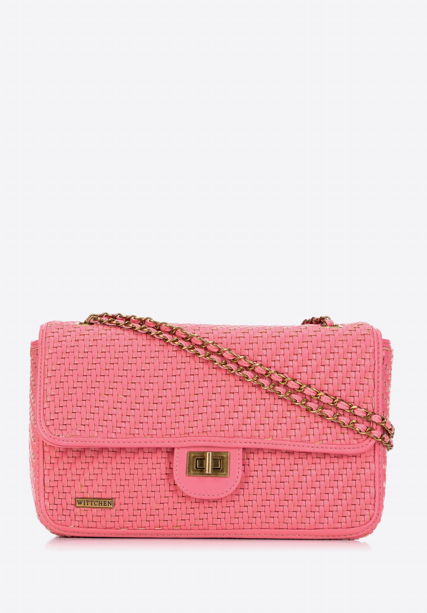 Ta stylowa listonoszka z klapką zyska uznanie fanek nietuzinkowych dodatków. Listonoszka choć ma klasyczny fason, efektownie się prezentuje dzięki eleganckiej plecionce, która dodaje jej wyrazistości, a łańcuszek w kolorze mosiądzu szykownie dopełnia całość. Poza niepowtarzalnym urokiem, model wyróżnia również praktyczne wnętrze. Pod klapką zamykaną na przekręcane zapięcie ta średniej wielkości torebka oferuje wystarczającą przestrzeń na portfel, telefon, kosmetyki i inne niezbędne drobiazgi. W komorze głównej zamykanej na zamek znajdziesz również otwartą kieszonkę na drobiazgi i drugą kieszonkę na suwak. Listonoszka ma kolor zgaszony różowy. Pokochasz ją za jej unikalny charakter, który sprawia, że świetnie wygląda zarówno w zestawieniu z kontrastowymi stylizacjami, jak i eleganckimi sukienkami, czy też skórzaną ramoneską. Jeśli szukasz modnej torebki na wiele okazji zdecyduj się na listonoszkę na łańcuszku WITTCHEN 98-4Y-010-P!