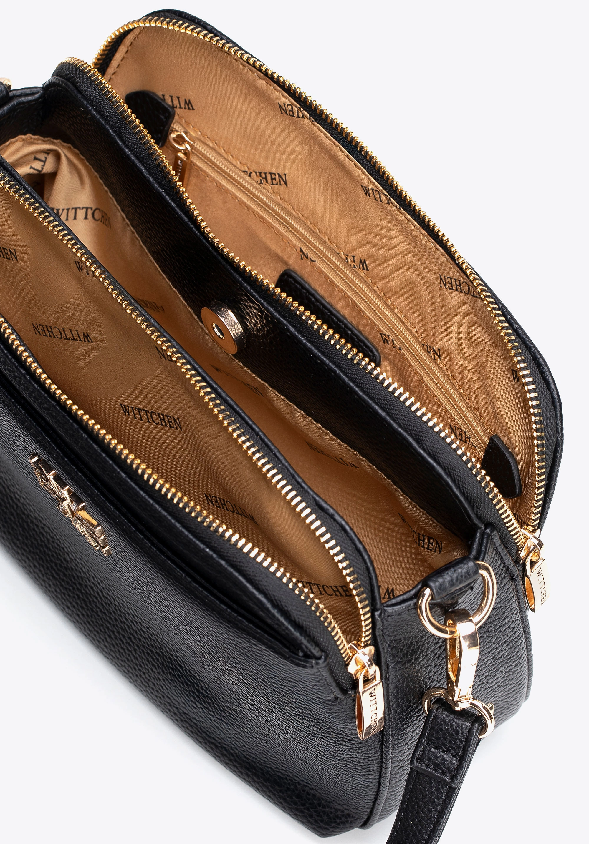Mała torebka damska WITTCHEN 29-4Y-016-B1 z ekoskóry to elegancka listonoszka z trzema komorami, która zapewnia wygodę i doskonałą organizację na każdą okazję. Ten model łączy klasyczną formę z funkcjonalnymi rozwiązaniami, dzięki czemu sprawdzi się zarówno na co dzień, jak i podczas wyjątkowych wyjść.