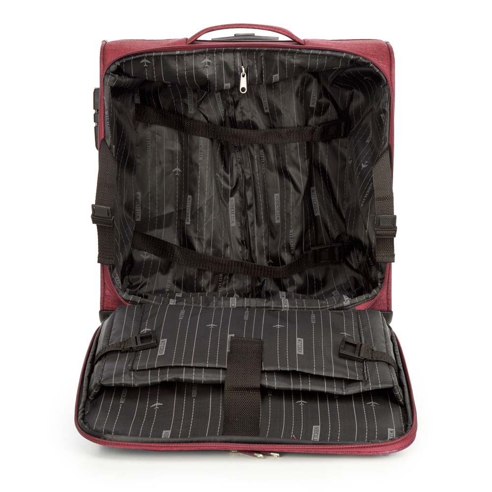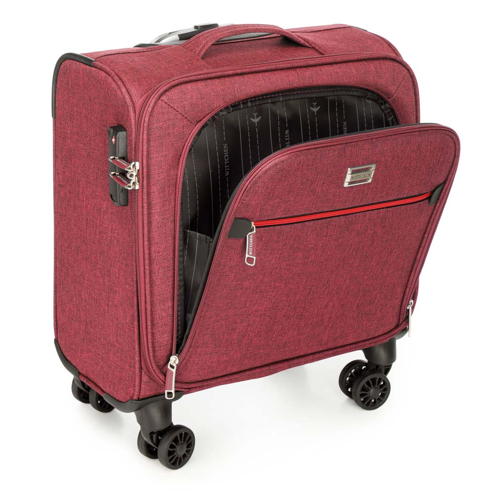 Mały neseser podróżny WITTCHEN 56-3S-505-31 z kolekcji Travel wykonany został z wytrzymałego poliestru w kolorze bordowym. Neseser dzięki odpowiednim wymiarom spełnia wymogi bagażu podręcznego w większości tanich linii lotniczych (EasyJet, LOT, Lufthansa, Wizz Air, Aeroflot). Wyposażony jest w cztery podwójne kółka ułatwiające przemieszczenie, wysuwaną aluminiową rączkę, oraz dodatkowy uchwyt do ręki. Wewnątrz znajduje się komora z regulowanymi pasami zabezpieczającymi rzeczy przed przemieszczaniem, miękko wyścielana kieszeń na laptopa o maksymalnych wymiarach 24 cm x 35 cm, oraz otwarta kieszeń. Ponadto na zewnątrz jest 2 praktyczne kieszonki zamykane na suwak na akcesoria przydatne w podróży, które warto mieć zawsze pod ręką. Paski przytrzymujące klapę to dodatkowa zaleta tego modelu. Atutem jest również zabezpieczenie w postaci zamka TSA, dzięki któremu podczas rewizji bagażu przez służby celne mamy gwarancję bezinwazyjnego otwarcia walizki i jej ponownego zamknięcia, bez uszkodzenia zamka. Neseser WITTCHEN 56-3S-505-31 to wytrzymały i praktyczny bagaż, który zapewni wygodę i bezpieczeństwo podczas każdego wyjazdu.