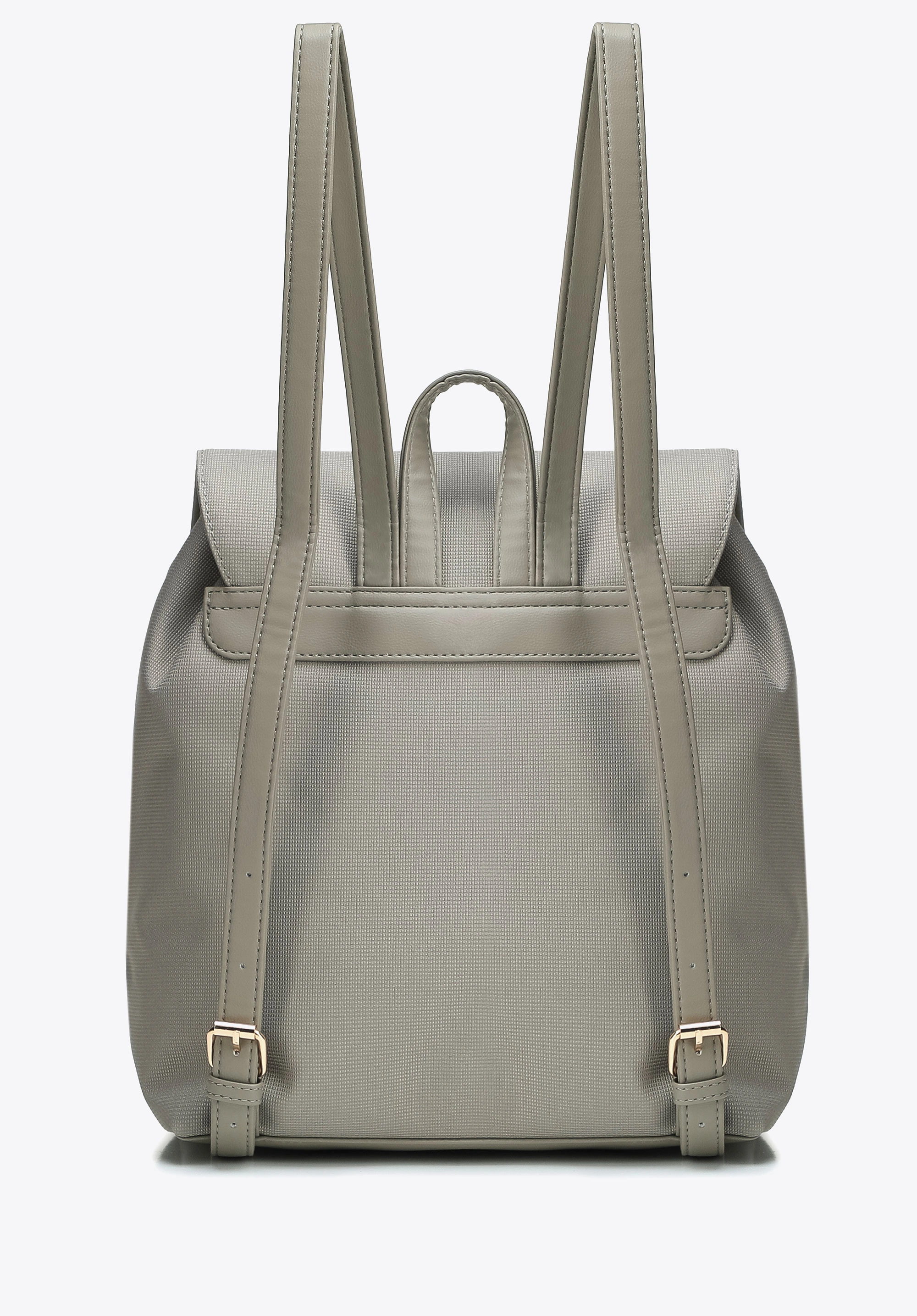 Plecak damski WITTCHEN 102-4Y-403-8 to pojemny i funkcjonalny plecak z klapą i troczkiem, który zapewnia wygodę oraz uporządkowaną przestrzeń na co dzień. Elegancki, szary kolor w połączeniu z minimalistycznym designem i eleganckimi detalami sprawia, że doskonale wpisuje się w miejski styl.