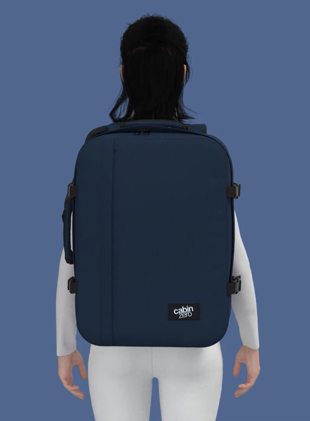 CabinZero Classic 44L został zaprojektowany z myślą o maksymalnej funkcjonalności – wyposażony jest w składany system nośny z przepływem powietrza na tylnym panelu i miękkich paskach naramiennych, które odciążają plecy i ramiona nawet przy pełnym załadunku. Ochronna komora na laptopa pozwala bezpiecznie przewozić sprzęt elektroniczny, a duża komora główna ułatwia organizację ubrań i akcesoriów.