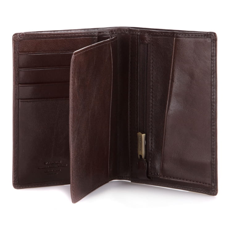 Średniej wielkości portfel męski WITTCHEN 10-1-020-4 z kolekcji Arizona, bardzo starannie i estetycznie, ręcznie wykonany z wytrzymałej, delikatnie połyskującej skóry cielęcej w kolorze brązowym. Logo - metalowa blaszka z herbem WITTCHEN w kolorze starego złota dodaje mu elegancji i podkreśla jego klasę. Wewnątrz znajduje się miejsce na bilon zamykane na suwak, kieszeń na banknoty, 4 miejsca na karty kredytowe i 7 kieszeni, w tym 1 przezroczysta. Idealny dla Panów ceniących sobie niepowtarzalną precyzję wykonania oraz wyrafinowany styl. Zapakowany jest w ekskluzywne opakowanie - sygnowane logo WITTCHEN.