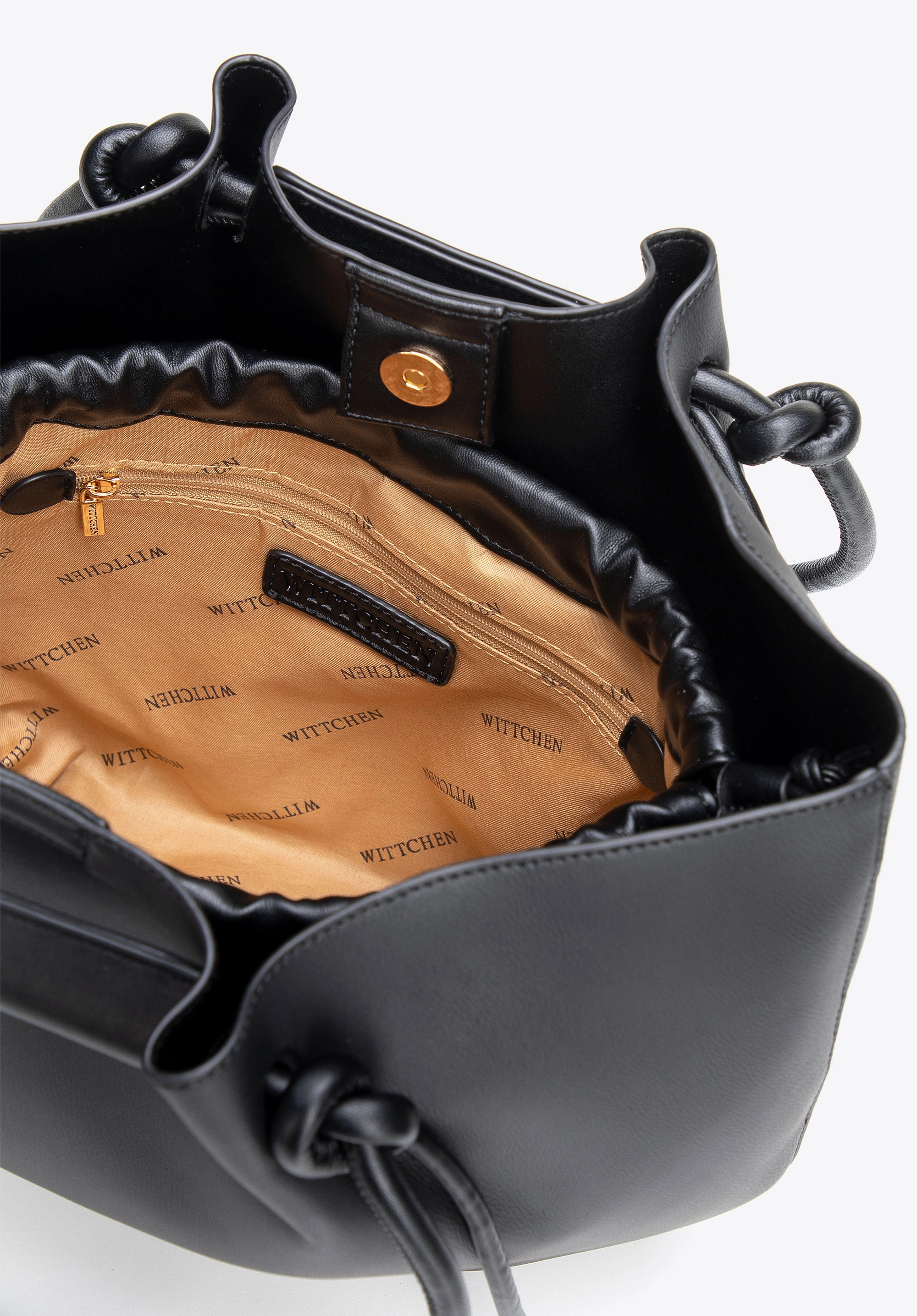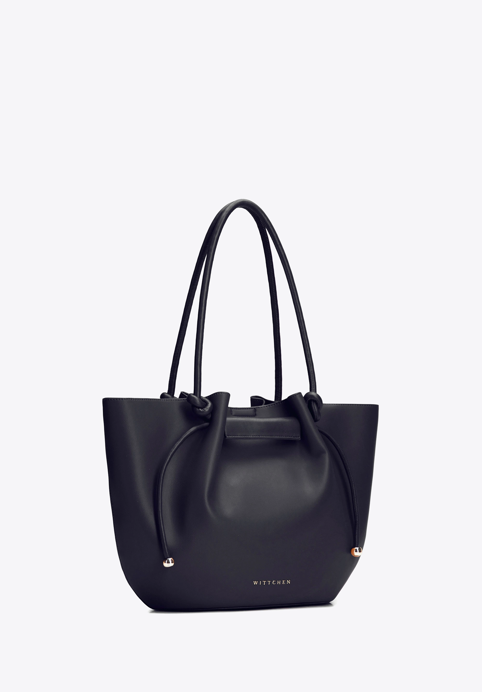 Damska shopperka WITTCHEN 102-4Y-404-1 z imitacji skóry z troczkami to pojemna i stylowa torebka, która zapewnia wygodę oraz doskonałą organizację każdego dnia. Klasyczny czarny kolor w połączeniu z eleganckim wykończeniem sprawia, że model idealnie wpisuje się w nowoczesne, miejskie stylizacje.