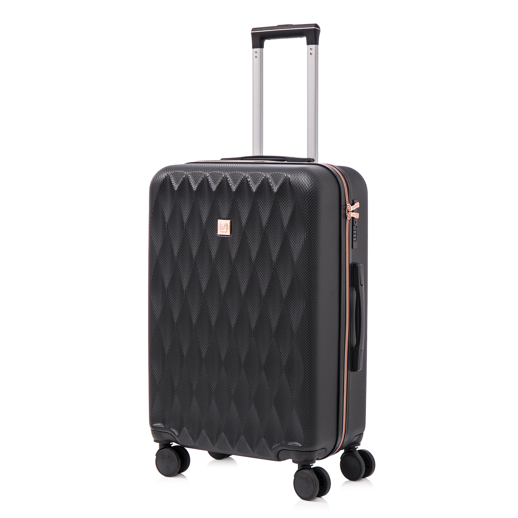 Model wyposażono w teleskopową rączkę oraz wygodne uchwyty – górny i boczny – co ułatwia przenoszenie walizki w różnych sytuacjach. Cztery podwójne, obrotowe kółka zapewniają płynne prowadzenie i stabilność nawet przy pełnym załadunku.