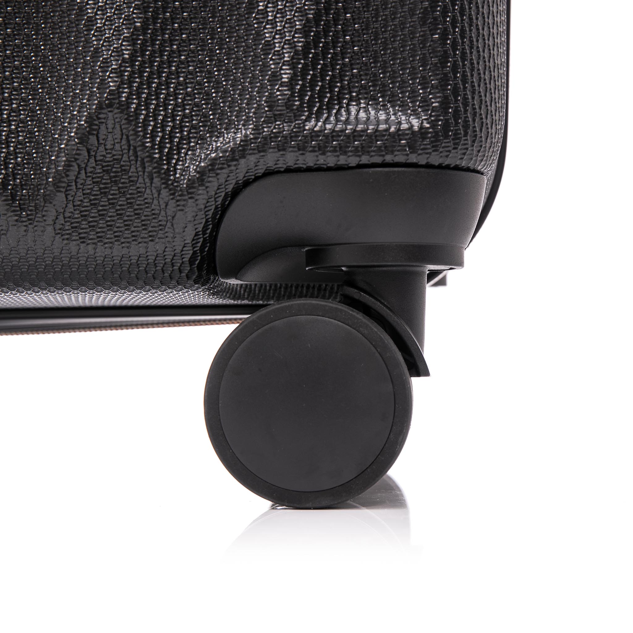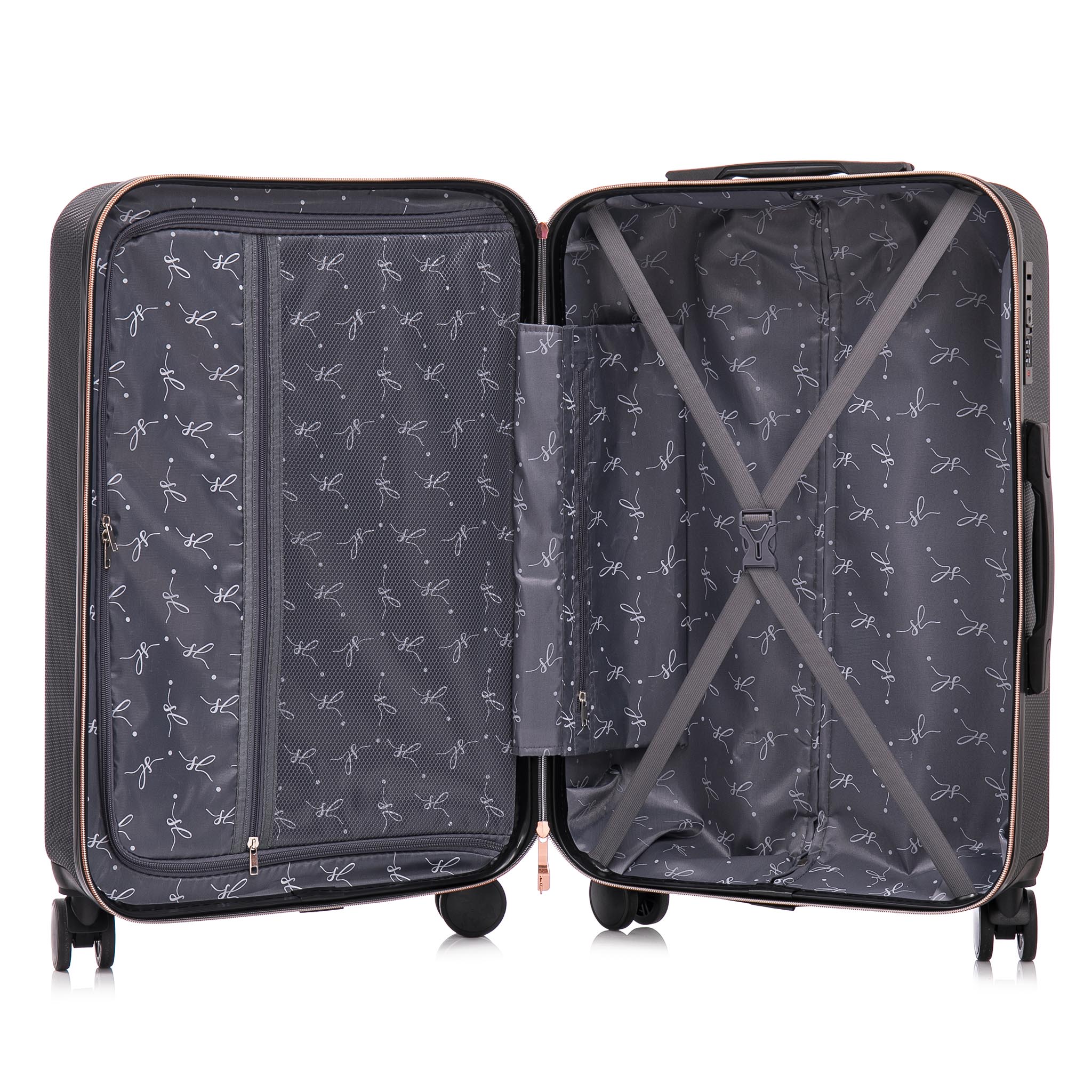 Wbudowany zamek szyfrowy zwiększa bezpieczeństwo przewożonych rzeczy, a funkcjonalne wnętrze z komorą zapinaną na suwak oraz pasami zabezpieczającymi pozwala utrzymać porządek i zapobiega przemieszczaniu się ubrań. Dodatkowe stopki chronią walizkę przed zabrudzeniem i uszkodzeniami podczas stawiania jej na boku.