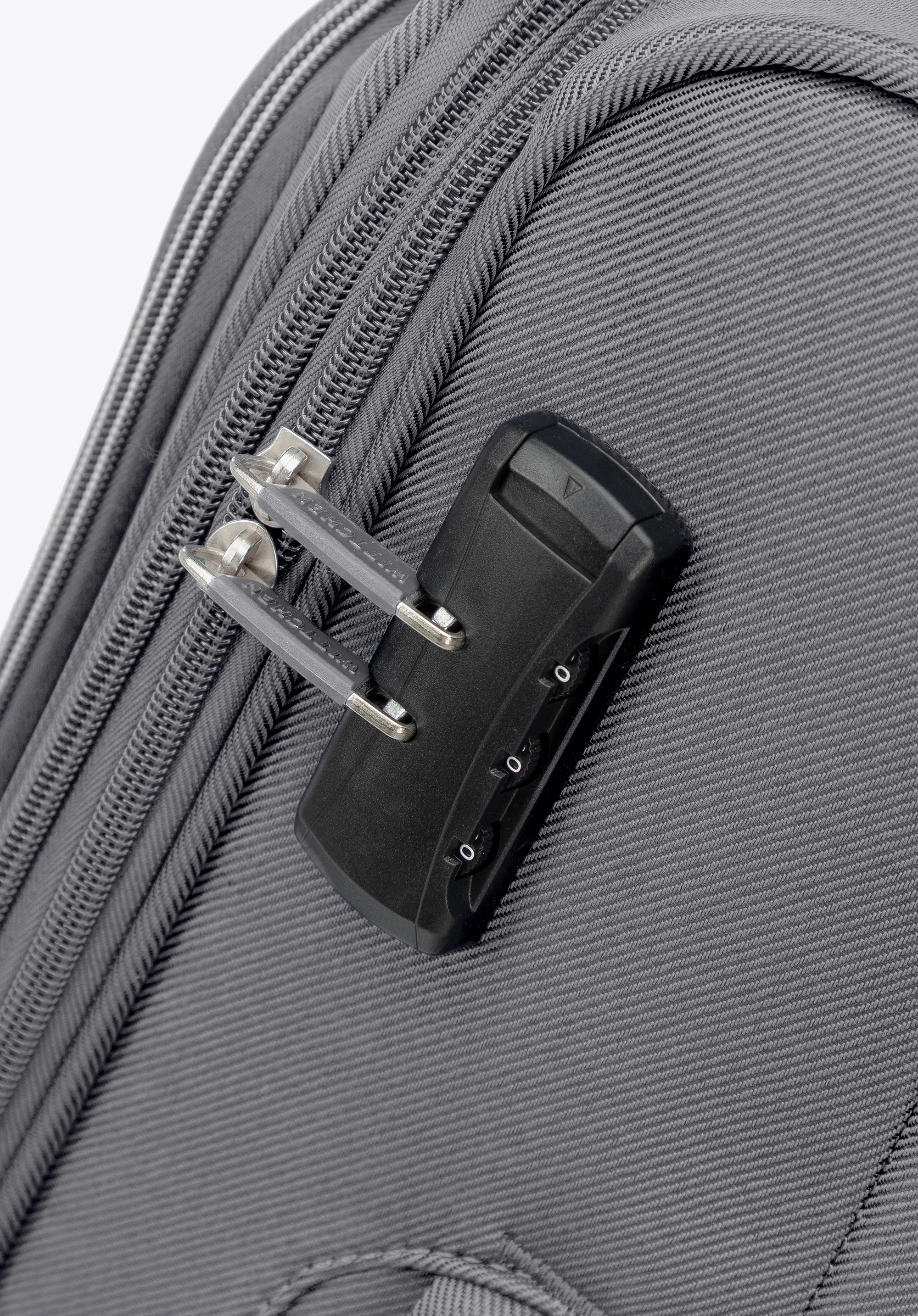 Zamek szyfrowy oraz możliwość zabezpieczenia suwaków kłódką zwiększają bezpieczeństwo bagażu.