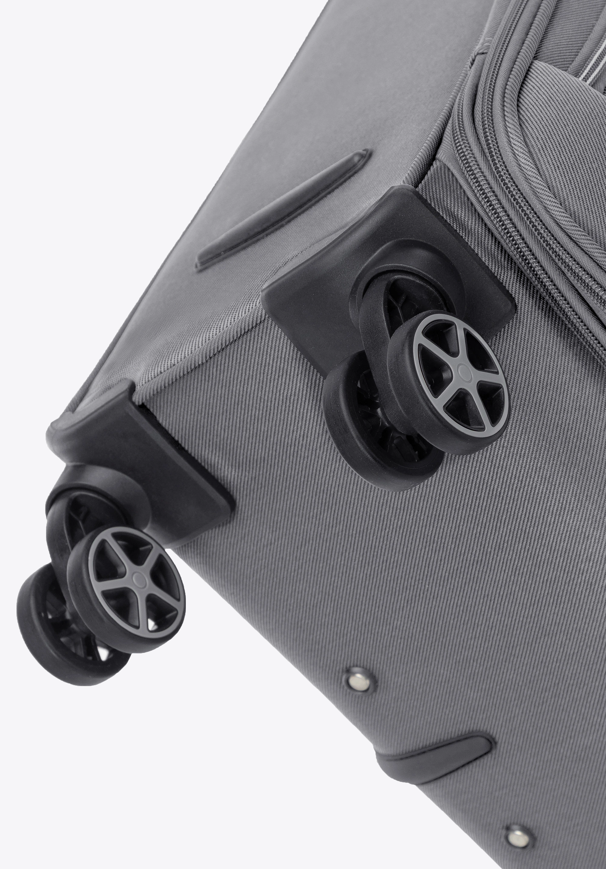 Walizka została wyposażona w cztery podwójne kółka obracające się o 360°, które zapewniają płynne i wygodne prowadzenie. Teleskopowa rączka oraz uchwyty górny i boczny ułatwiają transport nawet przy pełnym załadunku.