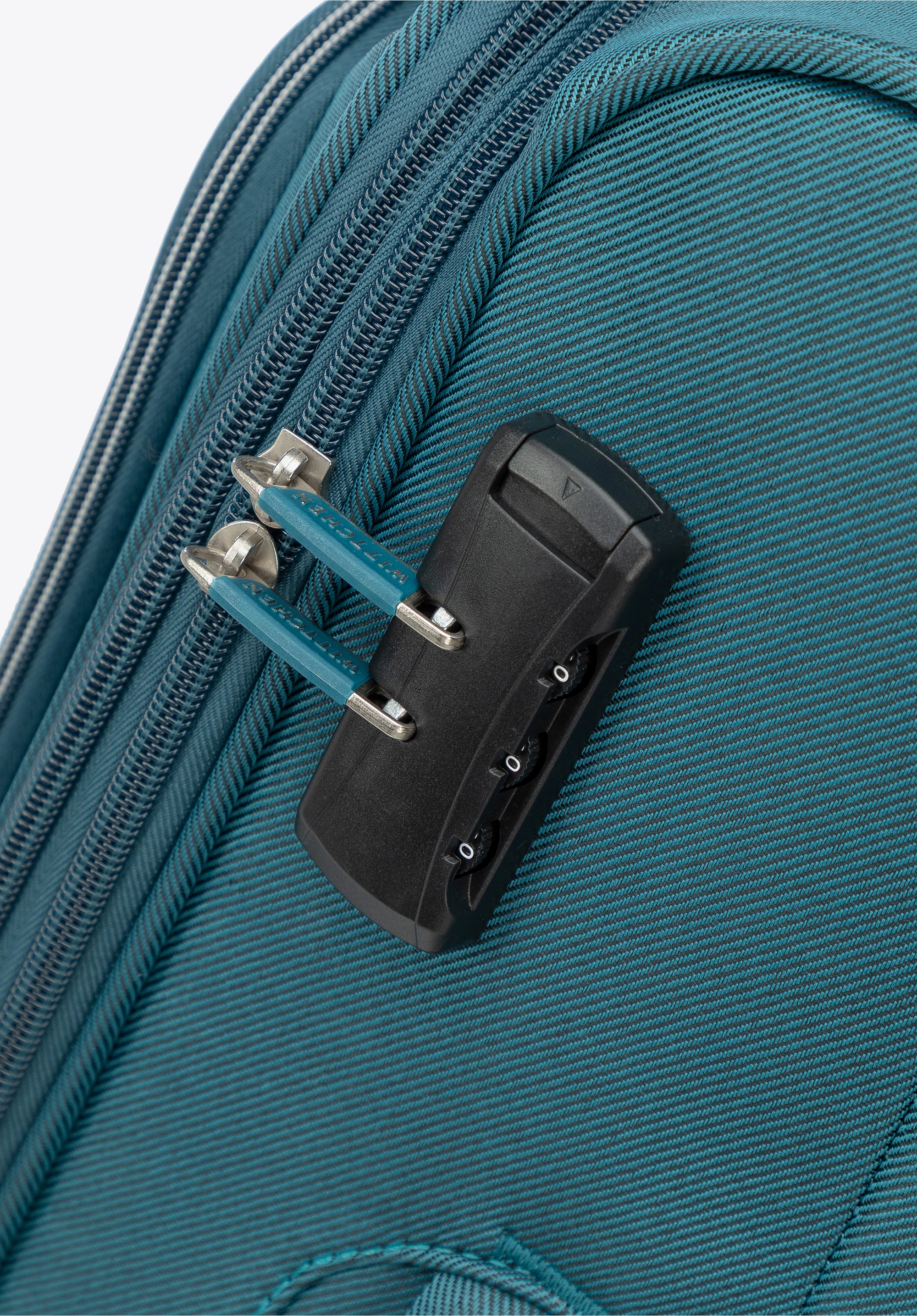 Zamek szyfrowy oraz możliwość zabezpieczenia suwaków kłódką zwiększają bezpieczeństwo bagażu.