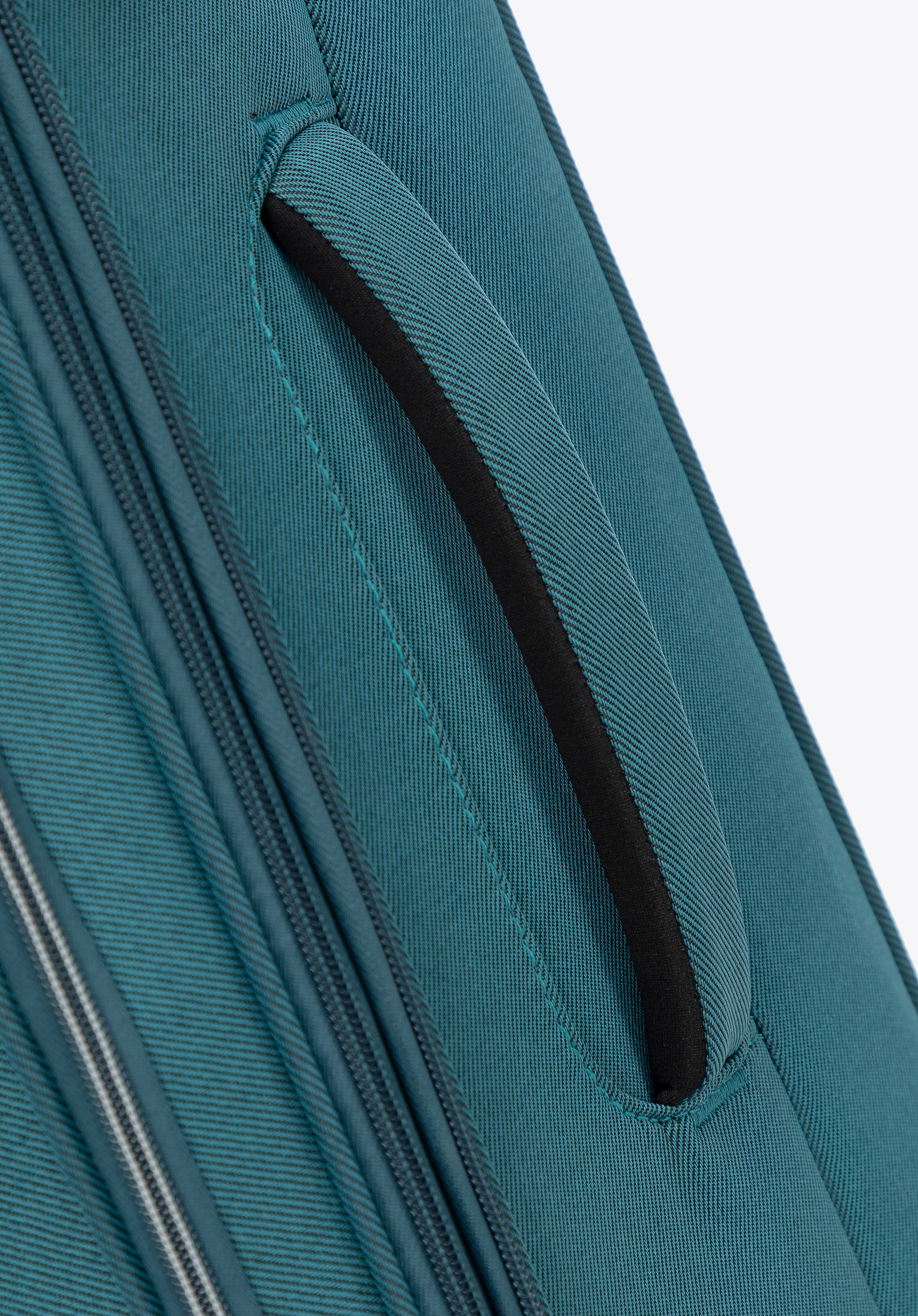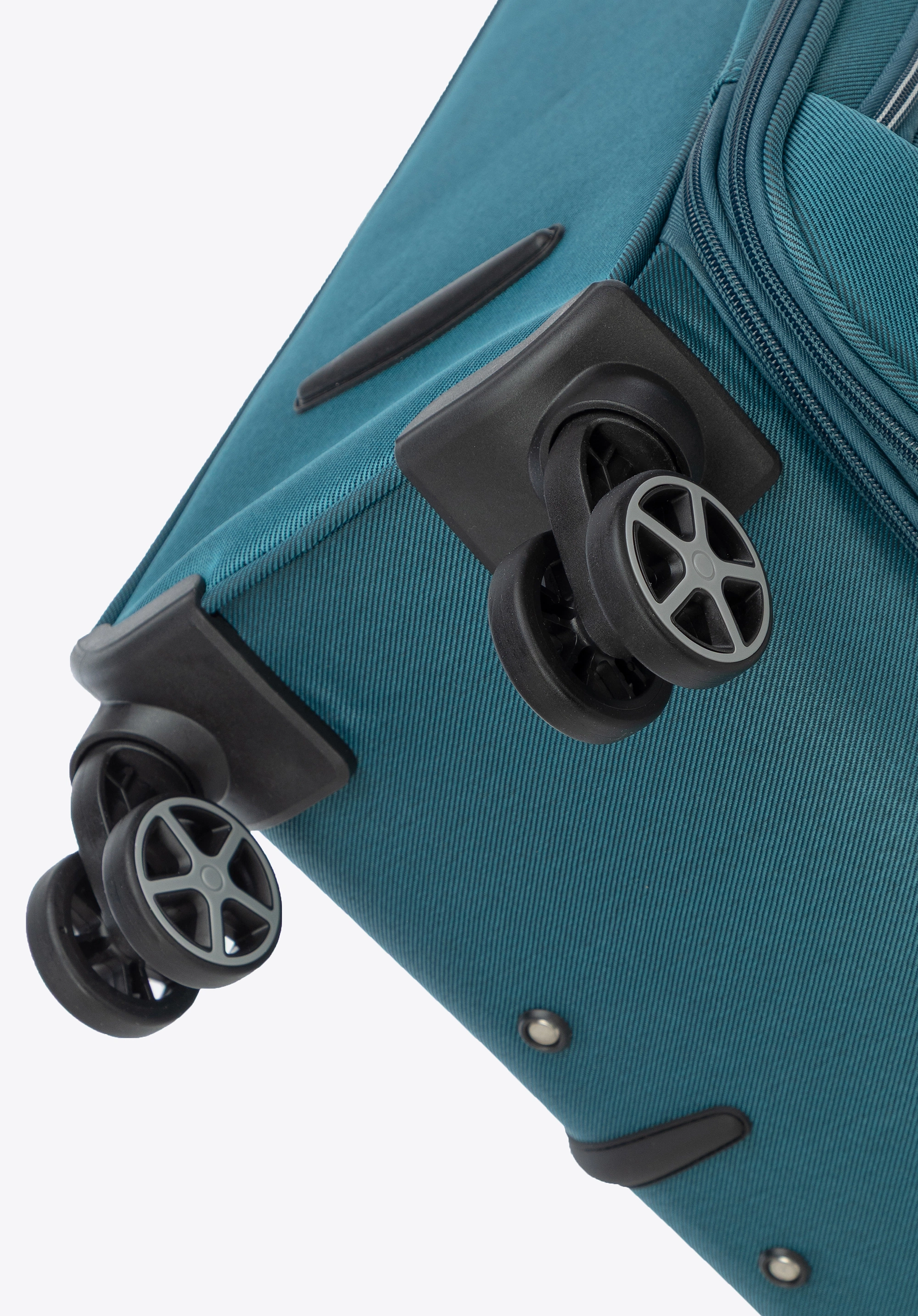 Walizka została wyposażona w cztery podwójne kółka obracające się o 360°, które zapewniają płynne i wygodne prowadzenie. Teleskopowa rączka oraz uchwyty górny i boczny ułatwiają transport nawet przy pełnym załadunku.