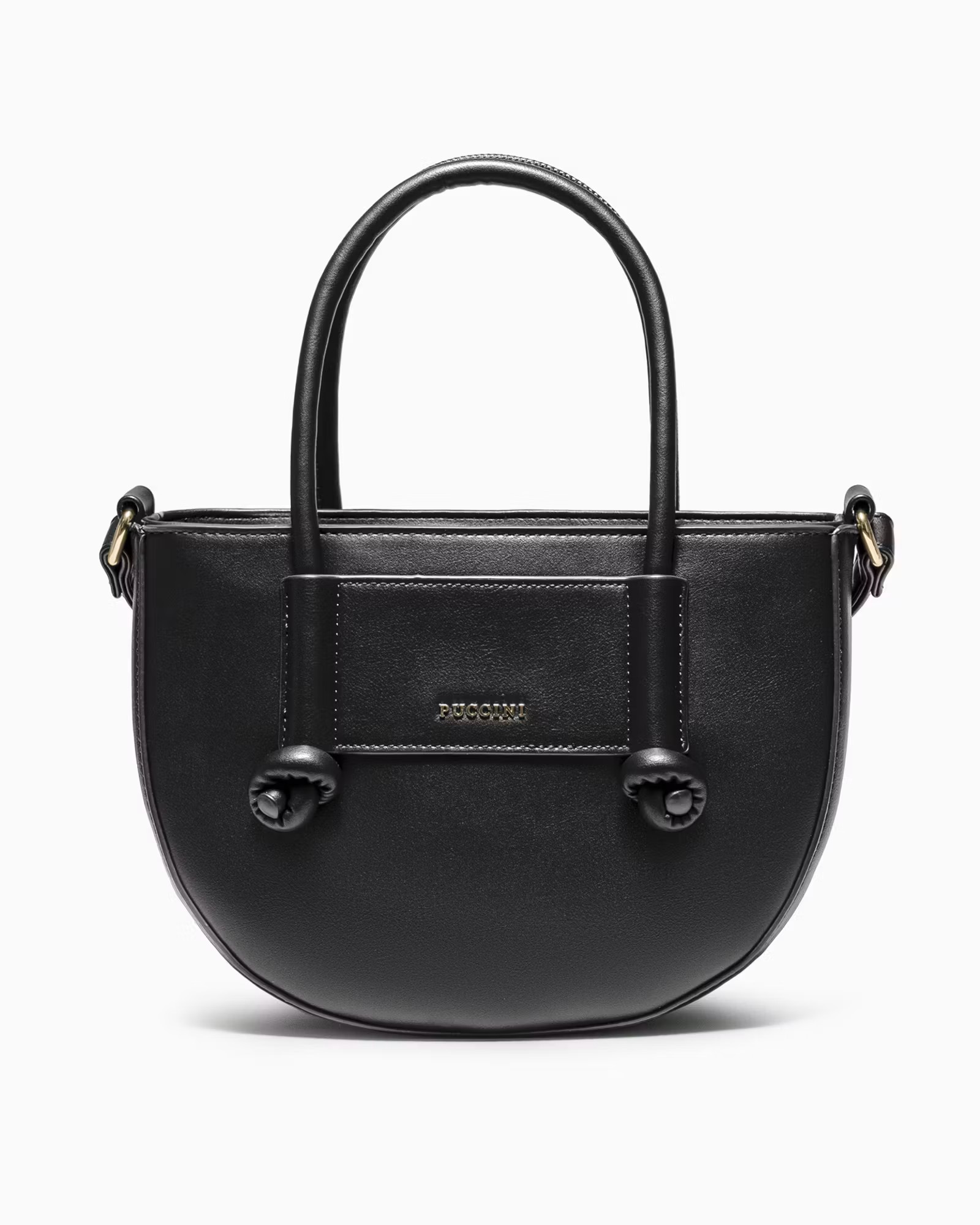 Wnętrze zostało zaprojektowane z myślą o funkcjonalności – znajdziesz tu dwie kieszenie: jedną zapinaną na zamek na cenniejsze przedmioty oraz drugą otwartą na drobiazgi. Ozdobne węzły na froncie oraz subtelne logo PUCCINI nadają całości unikalnego i stylowego wykończenia.