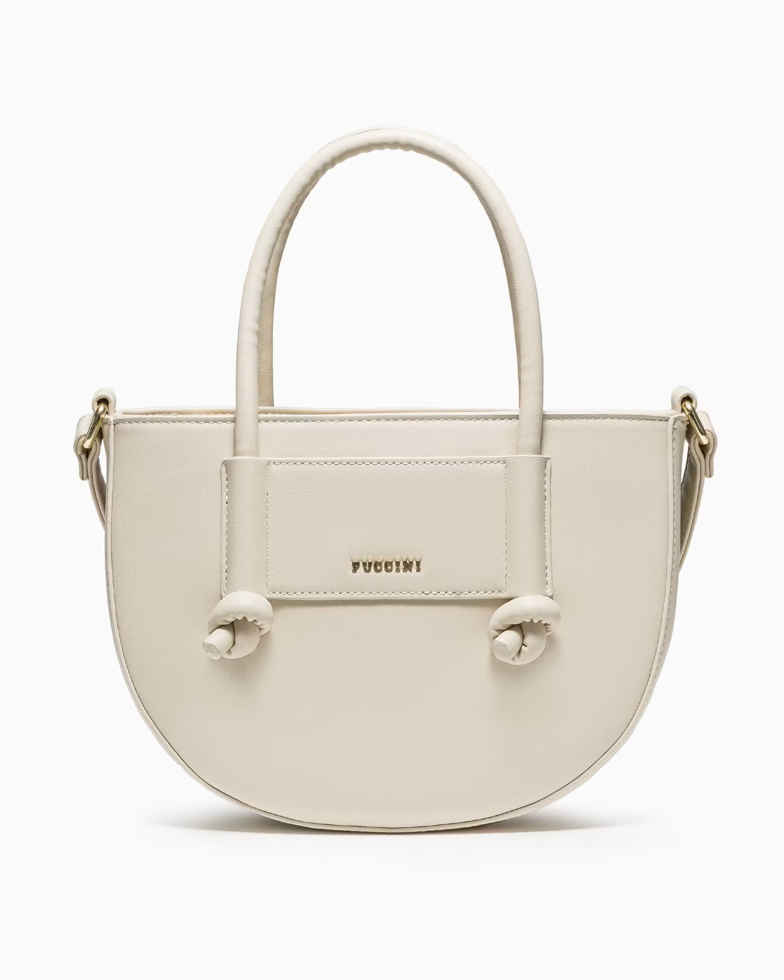 Wnętrze zostało zaprojektowane z myślą o funkcjonalności – znajdziesz tu dwie kieszenie: jedną zapinaną na zamek na cenniejsze przedmioty oraz drugą otwartą na drobiazgi. Ozdobne węzły na froncie oraz subtelne logo PUCCINI nadają całości unikalnego i stylowego wykończenia.