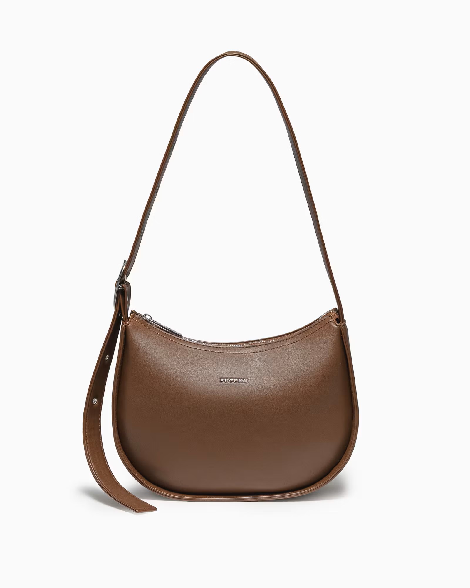 Wykonana z wysokiej jakości poliuretanu (skóra ekologiczna) torebka PUCCINI BK1251003M-2D zachwyca trwałością i estetyką. Brązowy kolor w połączeniu ze srebrnymi okuciami nadaje jej ponadczasowego charakteru, który nigdy nie wychodzi z mody. Regulowany pasek o długości do 92 cm pozwala idealnie dopasować sposób noszenia według upodobania.