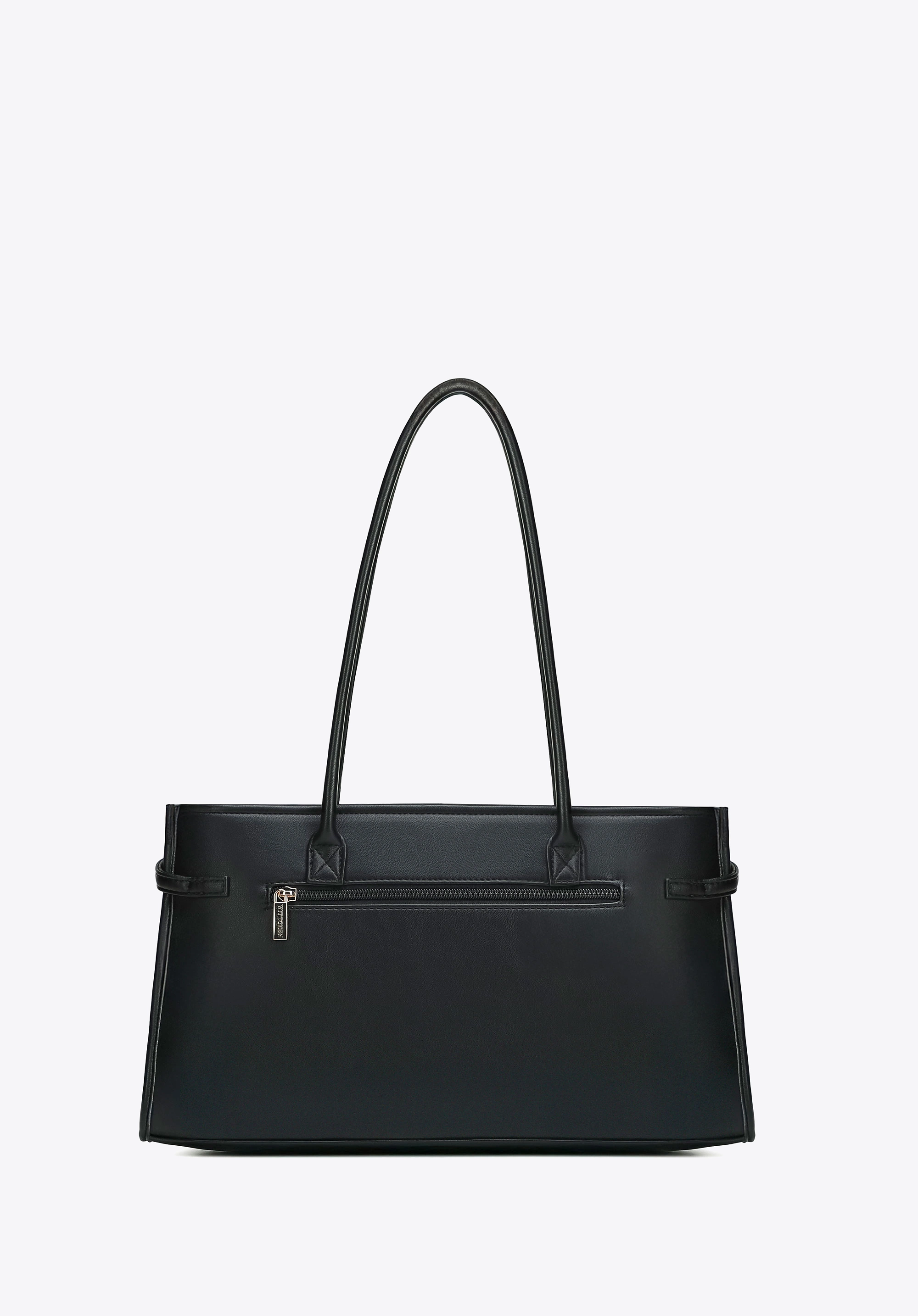 Wykonana z wysokiej jakości skóry ekologicznej, shopperka zachwyca gładką fakturą oraz nowoczesnym, podłużnym fasonem. Subtelny dekoracyjny pasek na froncie oraz złote detale metalowe nadają jej eleganckiego charakteru, a staranne wykończenie podkreśla dbałość o każdy szczegół.