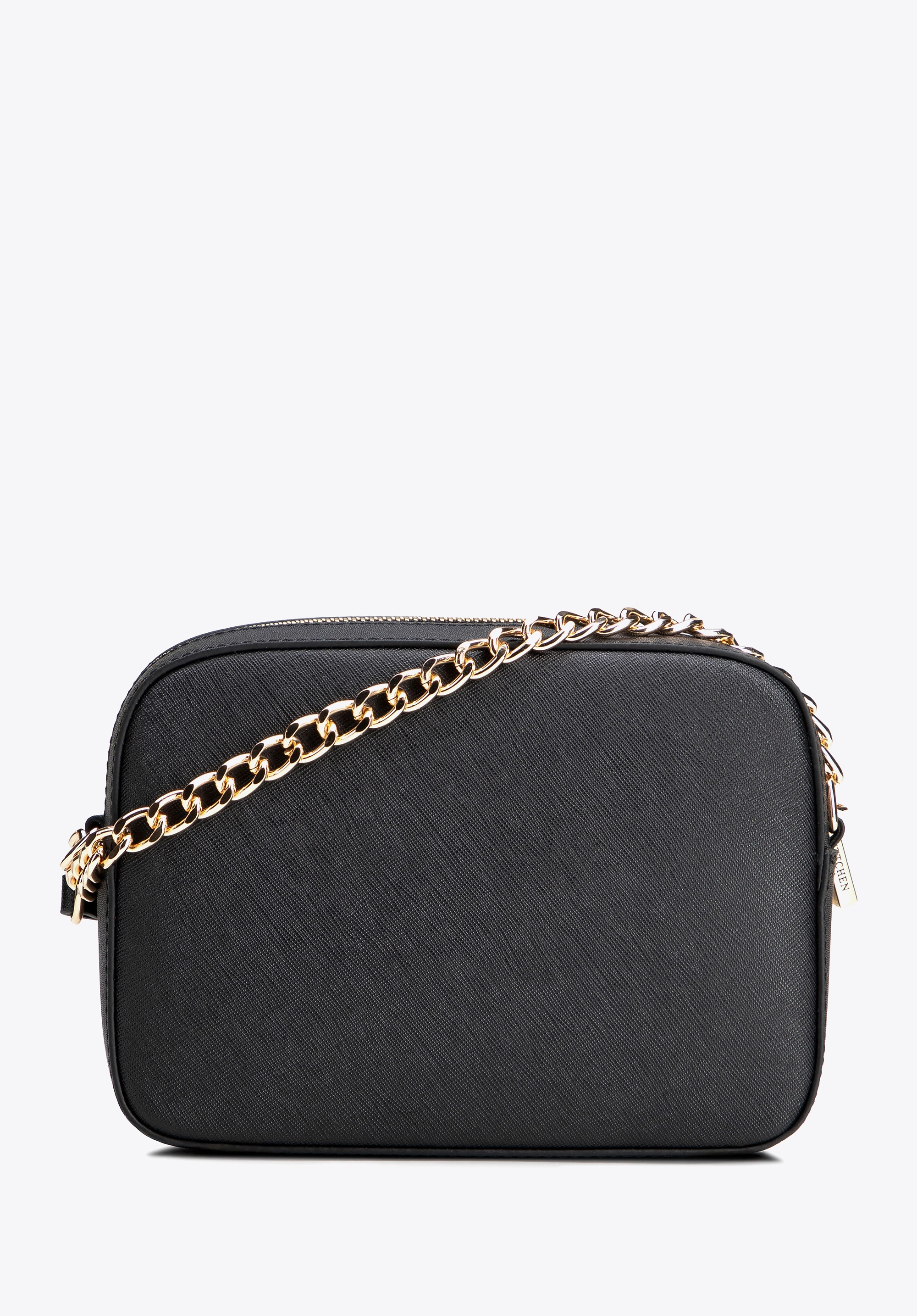 Sztywna konstrukcja sprawia, że torebka zawsze prezentuje się nienagannie, a złote elementy metalowe i pasek z łańcuszkiem nadają jej biżuteryjnego połysku. To idealny wybór na wesele, kolację czy spotkanie, ale równie dobrze uzupełni codzienne stylizacje w stylu casual.