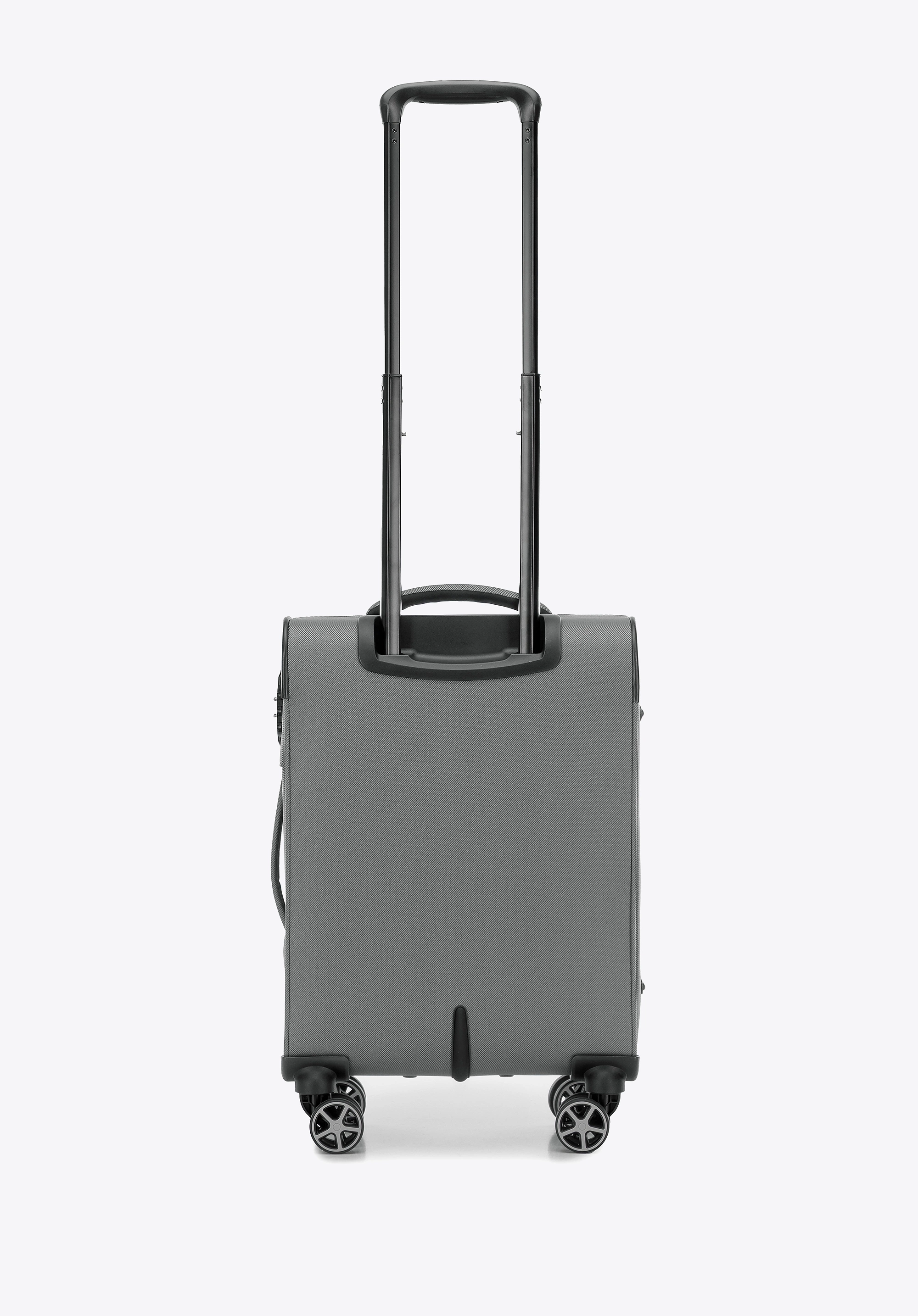 Walizka została wyposażona w cztery podwójne kółka obracające się o 360°, które gwarantują płynne i bezproblemowe manewrowanie. Teleskopowa rączka oraz dodatkowe uchwyty: górny i boczny, zapewniają komfort transportu w każdej sytuacji.