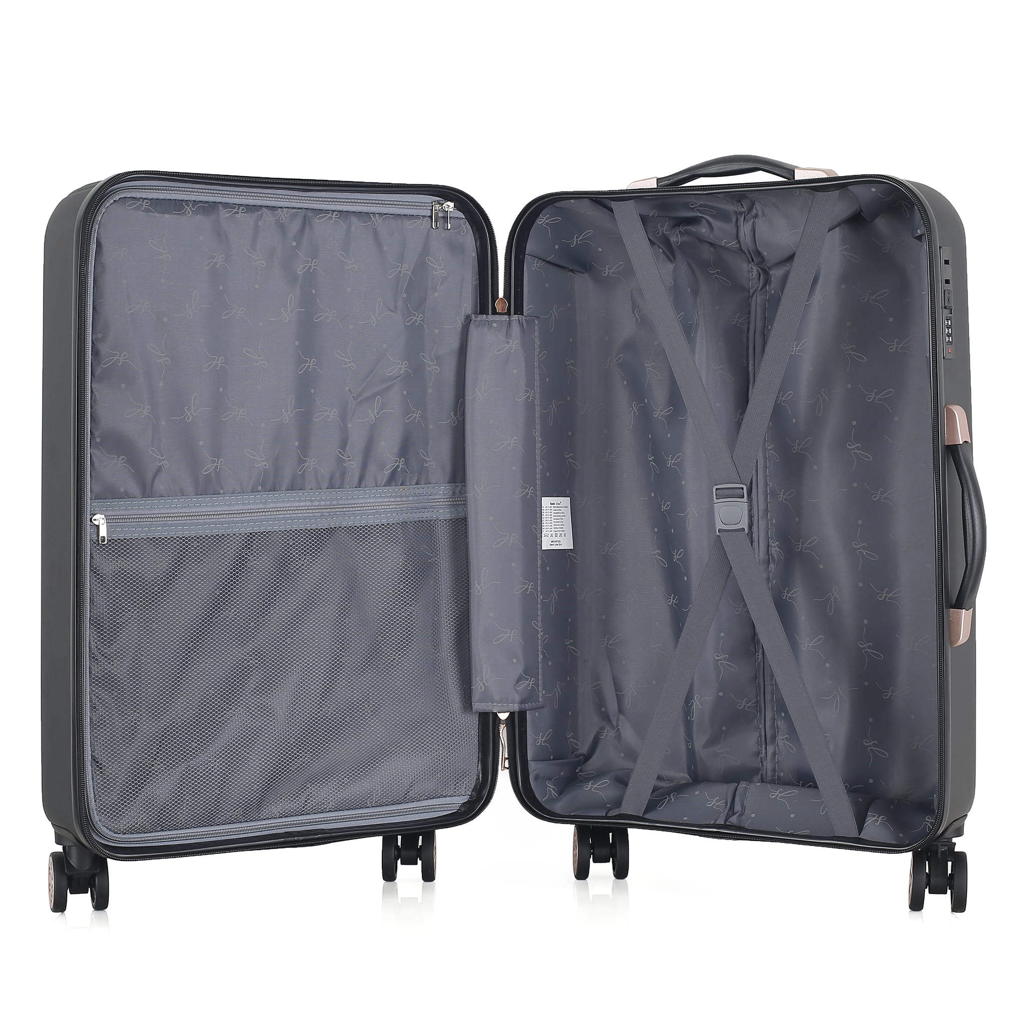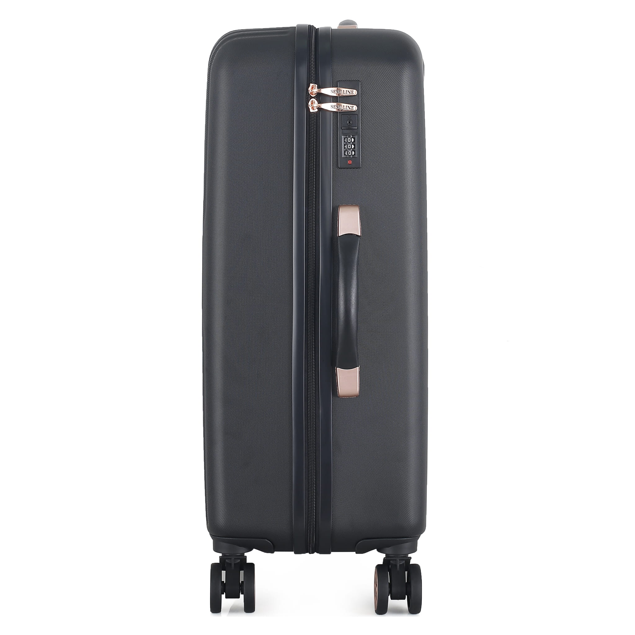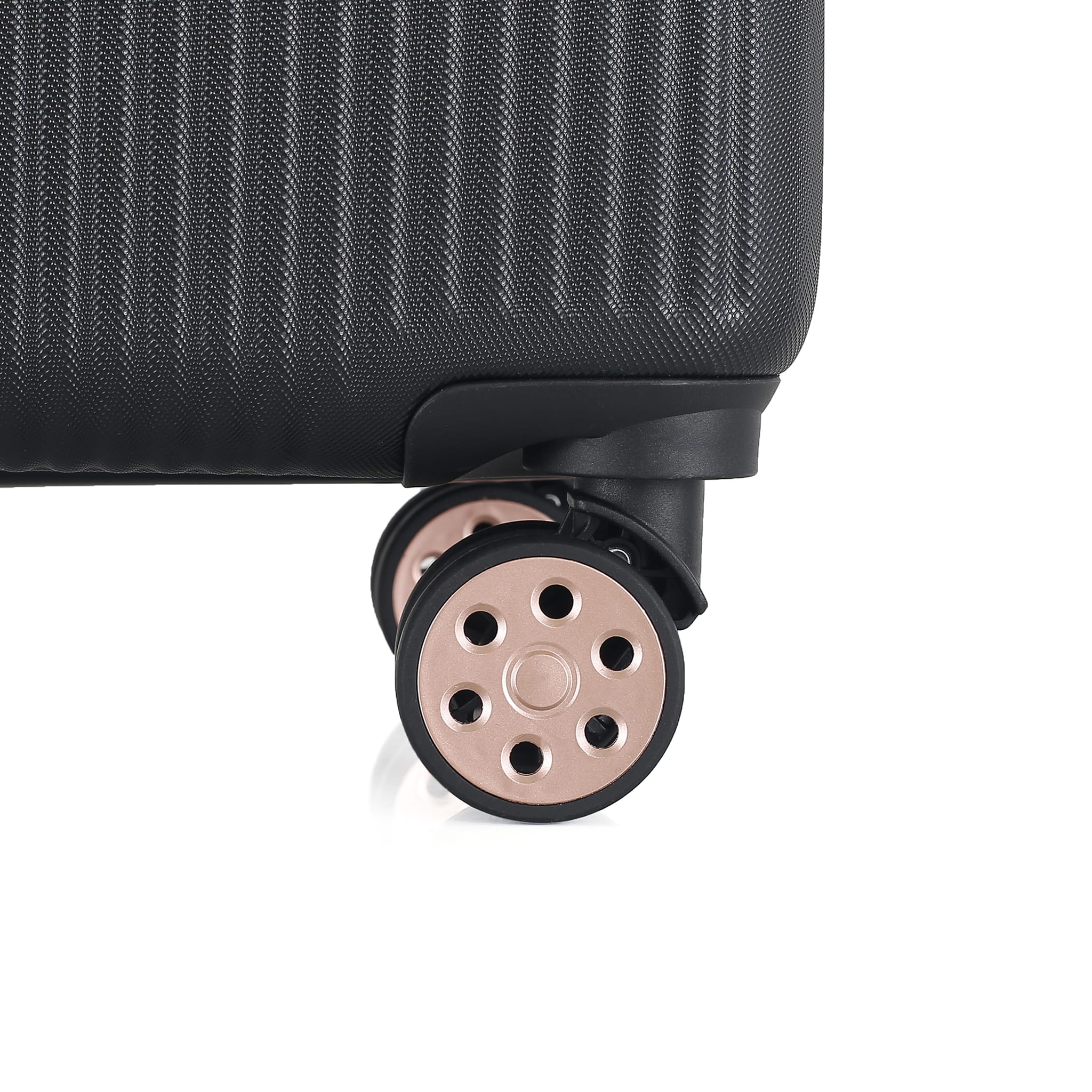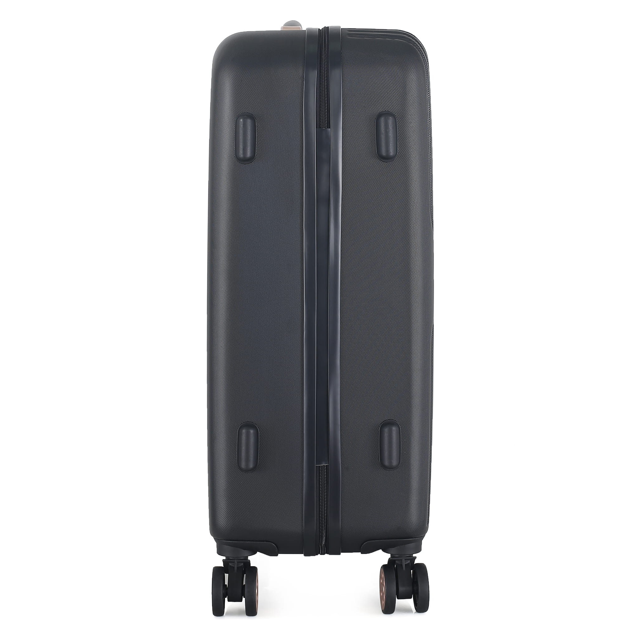 Model wyposażony jest w teleskopową rączkę oraz wygodny uchwyt górny, co ułatwia przenoszenie i prowadzenie walizki. Dodatkowa boczna rączka oraz stopki zwiększają komfort użytkowania i stabilność podczas postoju. Cztery podwójne kółka obrotowe 360° zapewniają płynne i lekkie prowadzenie w każdym kierunku, nawet przy pełnym obciążeniu.