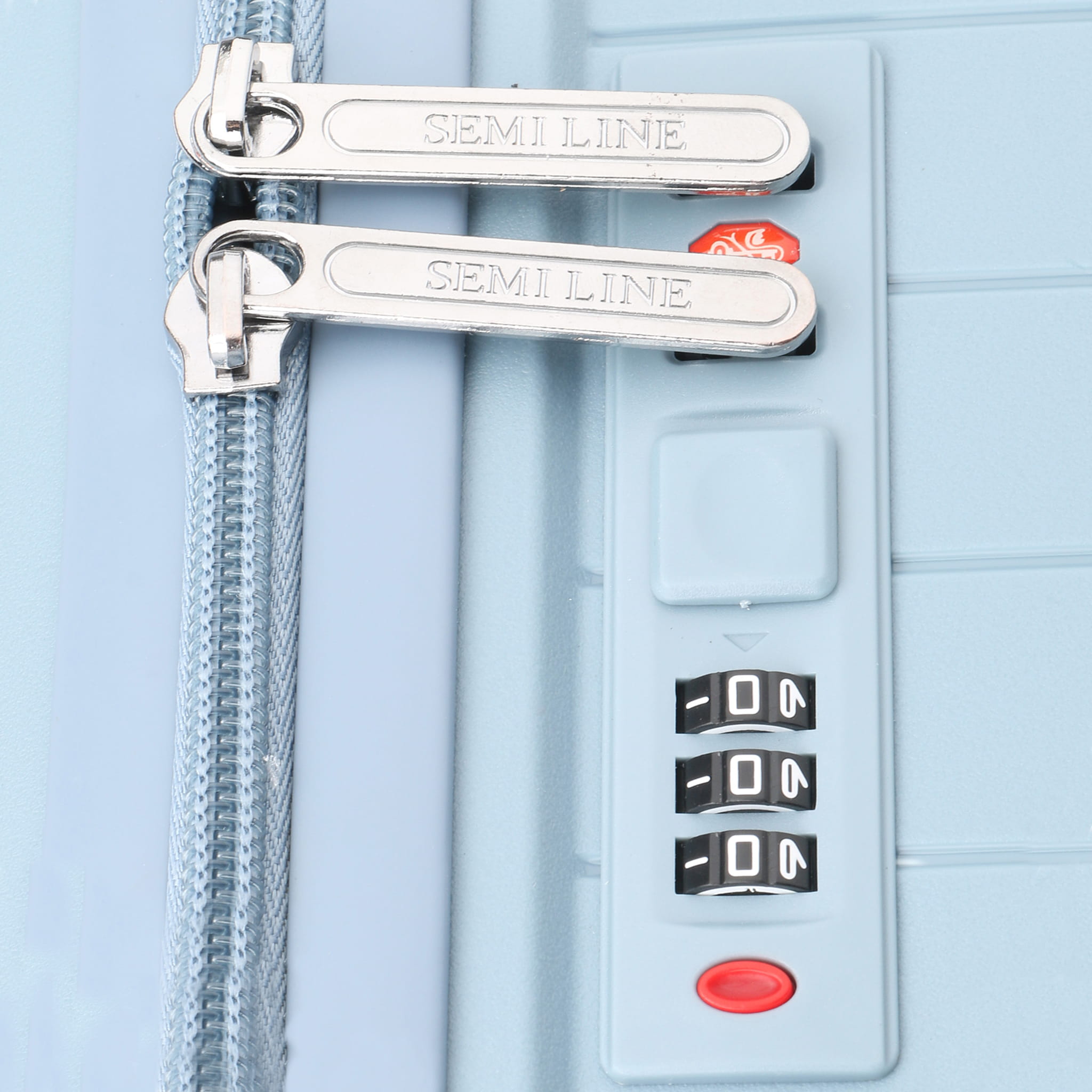 Walizka średnia Semi Line 24" T5780-2 w błękitnym kolorze to idealna propozycja na wyjazdy weekendowe. Wykonana z trwałego polipropylenu, jest odporna na uszkodzenia i pojemna. Wnętrze walizki zawiera kieszeń z siatki zapinaną na suwak oraz pasy zabezpieczające, co ułatwia organizację bagażu. Wbudowany zamek szyfrowy oraz boczne stopki i rączka dodatkowo zwiększają komfort i bezpieczeństwo użytkowania.