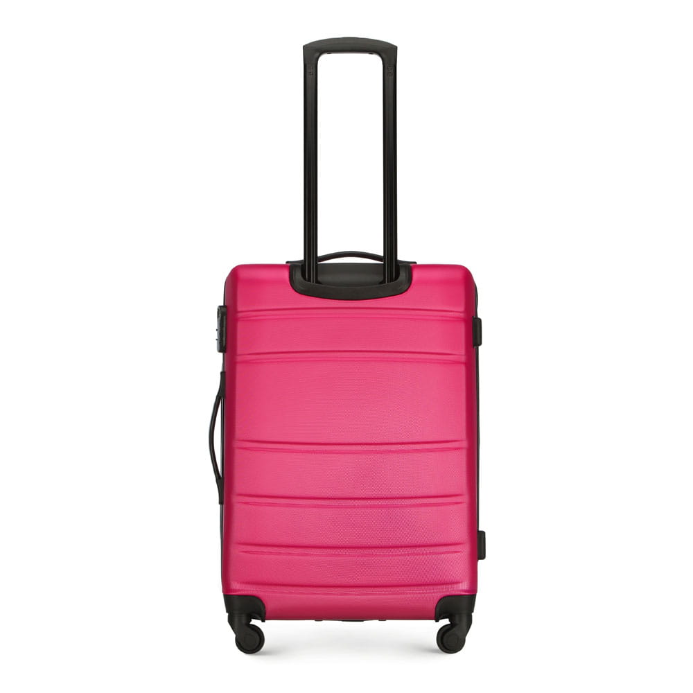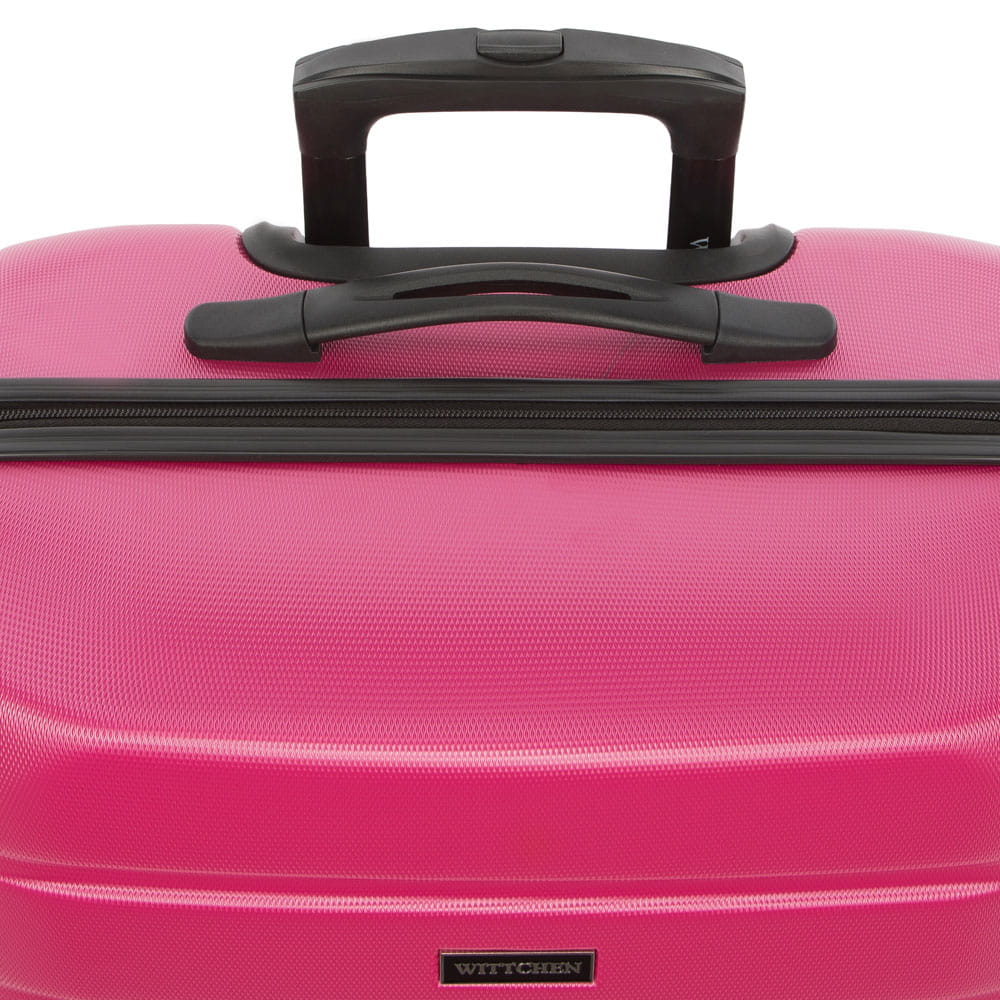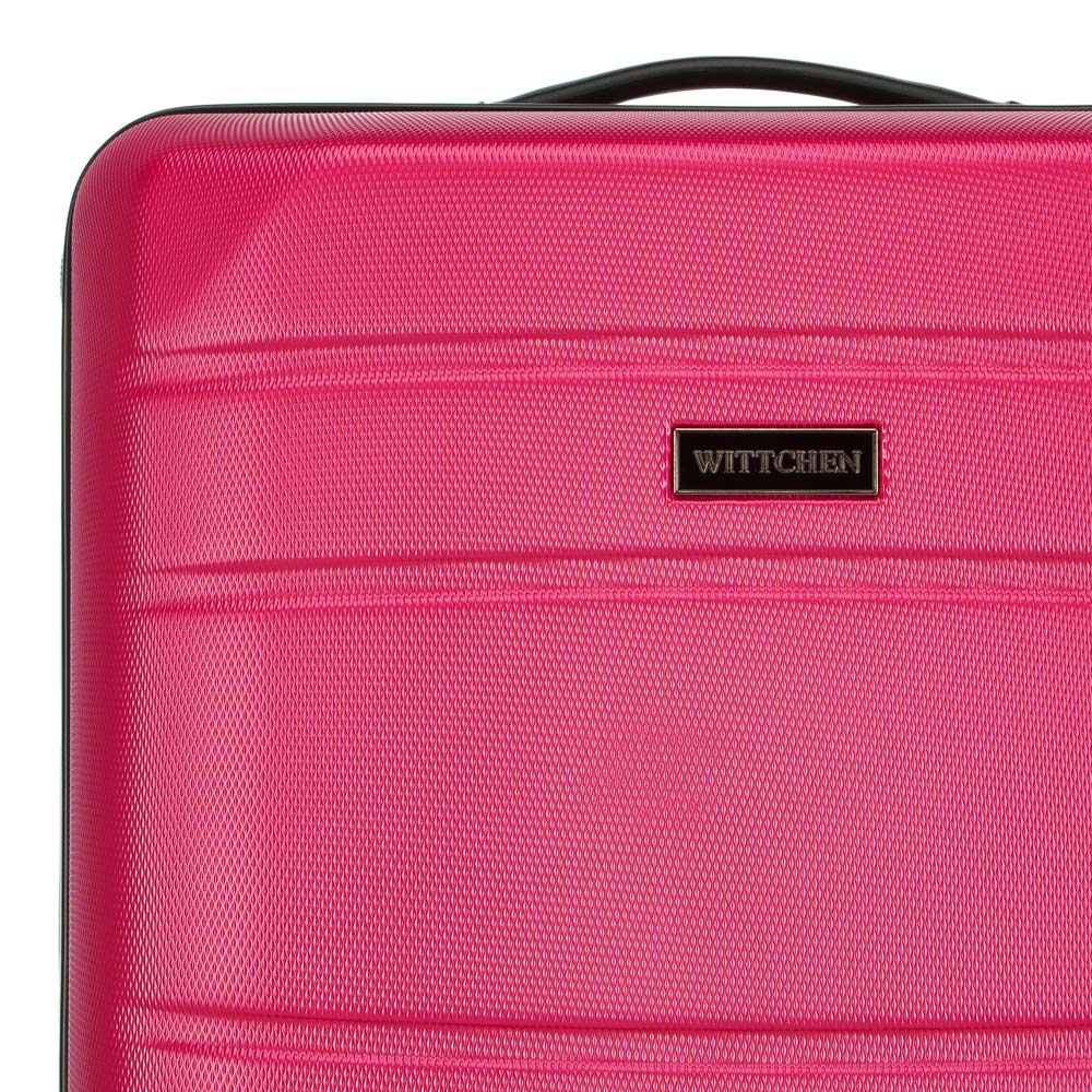 Walizka średnia WITTCHEN 56-3A-652-34 w kolorze różowym z kolekcji Globe line wykonana została z ABS-u, który charakteryzuje się wysoką odpornością na uszkodzenia i zadrapania. Walizka wyposażona jest w cztery obrotowe kółka ułatwiające przemieszczenie się z bagażem, wysuwaną aluminiową rączkę, oraz 2 gumowe uchwyty do ręki. Wewnątrz walizki znajduje się komora główna z elastycznymi pasami zabezpieczającymi rzeczy przed przemieszczaniem, komora zamykana na suwak i 2 kieszenie, jedna z siatki i druga mniejsza, obie zamykane na zamek. Dostęp do wnętrza przez osoby niepożądane uniemożliwia wyposażenie walizki w klasyczny zamek szyfrowy, który jest dodatkową zaletą bagażu.