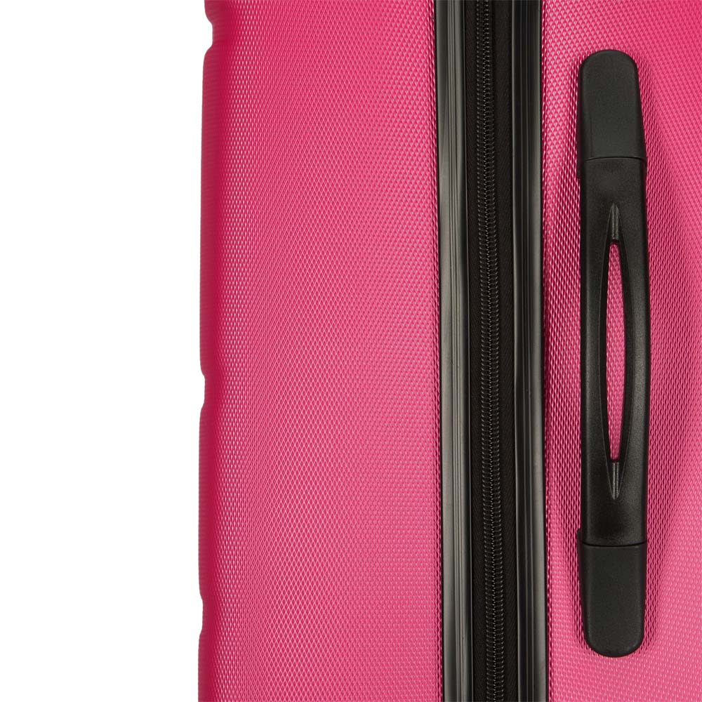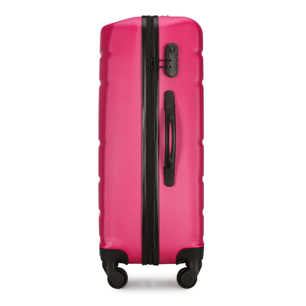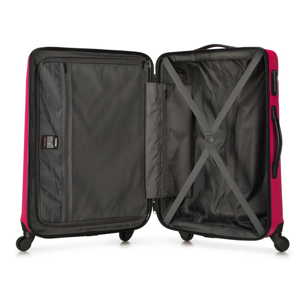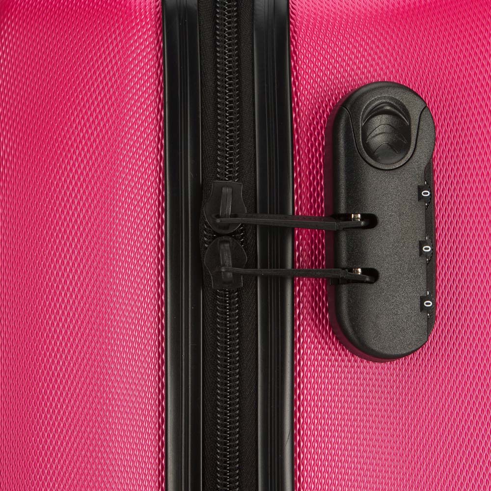 Walizka średnia WITTCHEN 56-3A-652-34 w kolorze różowym z kolekcji Globe line wykonana została z ABS-u, który charakteryzuje się wysoką odpornością na uszkodzenia i zadrapania. Walizka wyposażona jest w cztery obrotowe kółka ułatwiające przemieszczenie się z bagażem, wysuwaną aluminiową rączkę, oraz 2 gumowe uchwyty do ręki. Wewnątrz walizki znajduje się komora główna z elastycznymi pasami zabezpieczającymi rzeczy przed przemieszczaniem, komora zamykana na suwak i 2 kieszenie, jedna z siatki i druga mniejsza, obie zamykane na zamek. Dostęp do wnętrza przez osoby niepożądane uniemożliwia wyposażenie walizki w klasyczny zamek szyfrowy, który jest dodatkową zaletą bagażu.