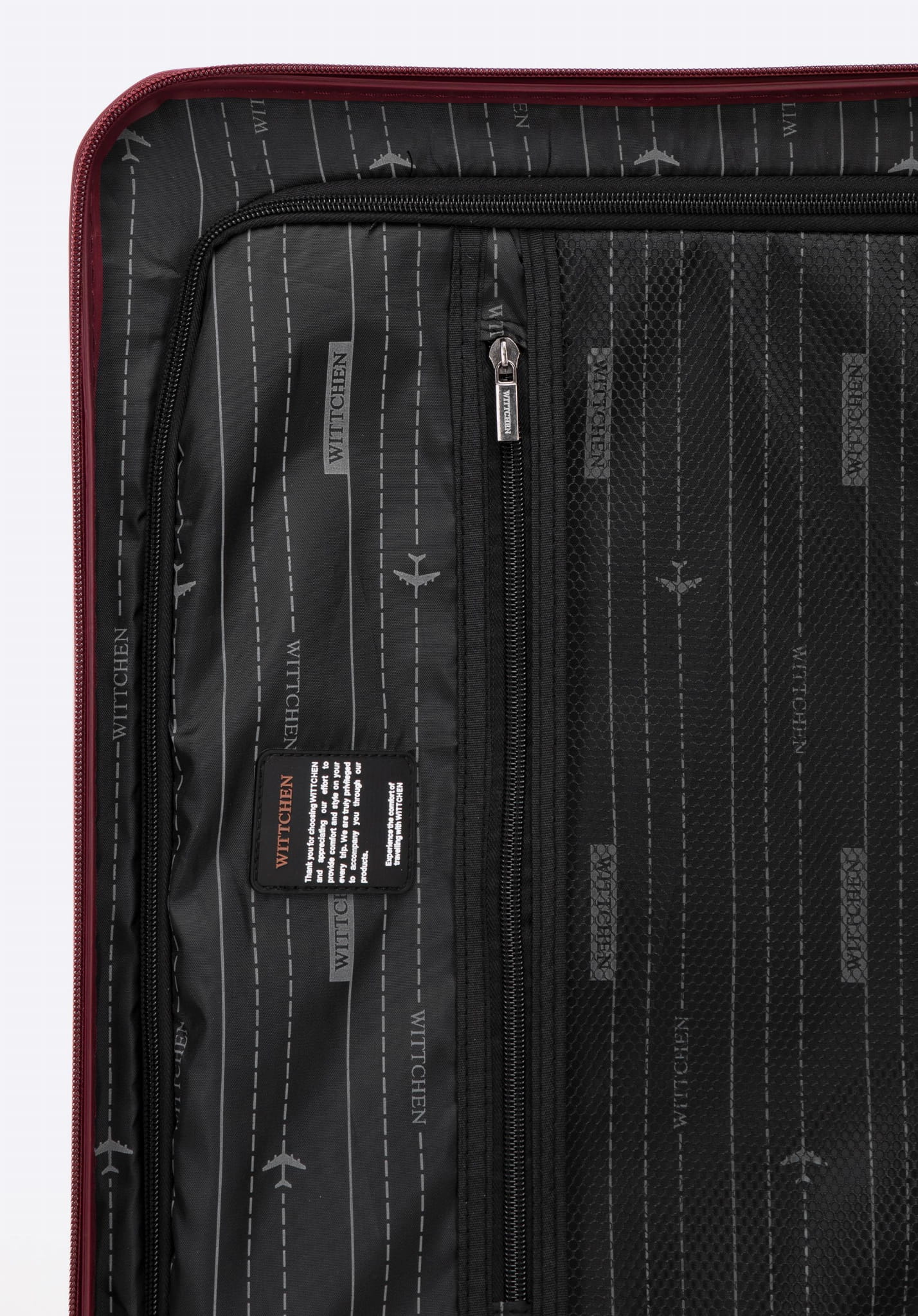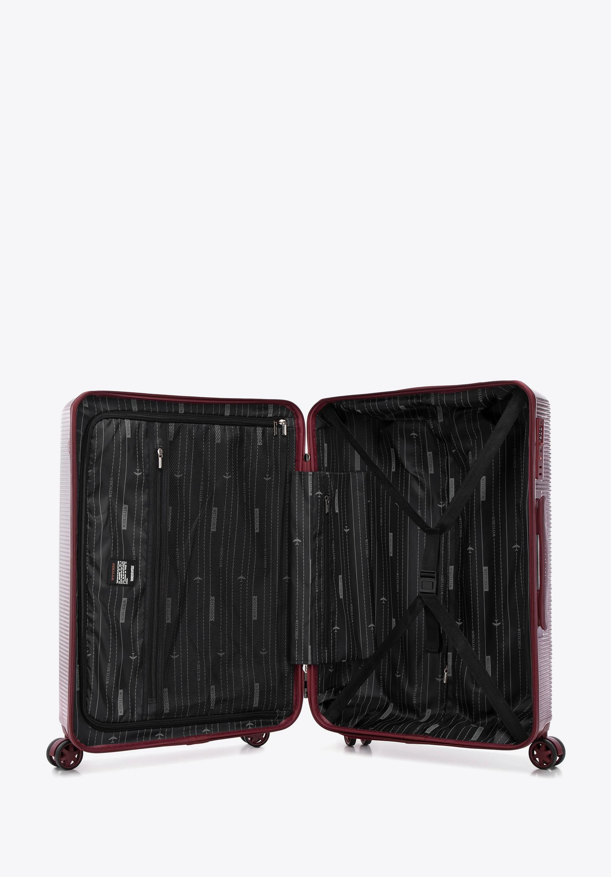 Wnętrze walizki podróżnej zostało zaprojektowane z myślą o maksymalnej organizacji bagażu. Dwie funkcjonalne komory, pasy zabezpieczające ubrania oraz dwie kieszenie zapinane na suwak pozwalają utrzymać porządek i chronić zawartość podczas podróży. Zamek szyfrowy TSA zapewnia bezpieczeństwo i zgodność z międzynarodowymi standardami kontroli lotniskowej.