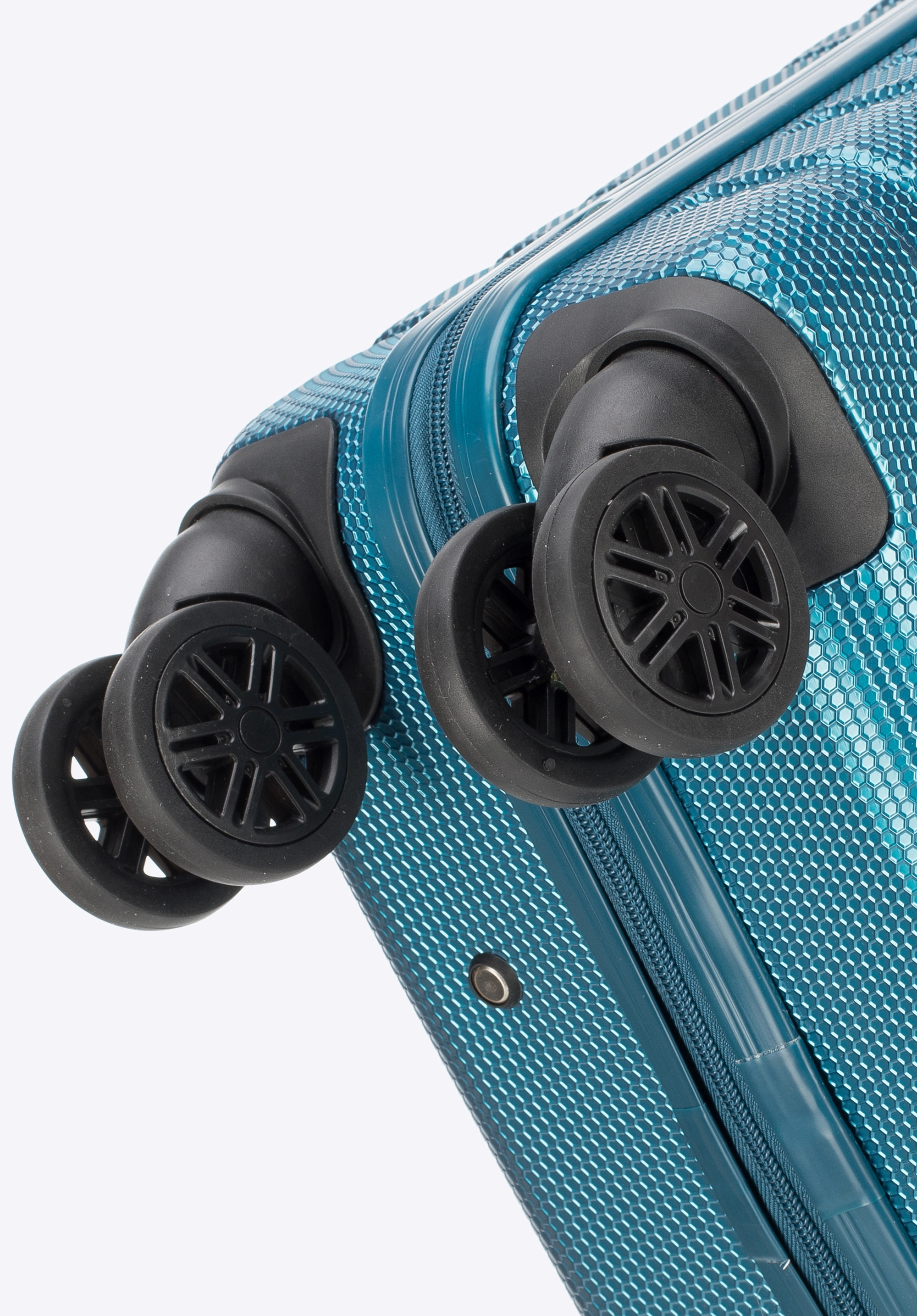 Walizka średnia o pojemności 58 l sprawdzi się zarówno na kilkudniowy wyjazd służbowy, jak i urlop. Cztery podwójne, łożyskowane kółka (łącznie 8) gwarantują płynne manewrowanie w zatłoczonym terminalu czy na dworcu. Teleskopowa rączka oraz elastyczny, gumowy uchwyt umożliwiają wygodne prowadzenie i przenoszenie bagażu.