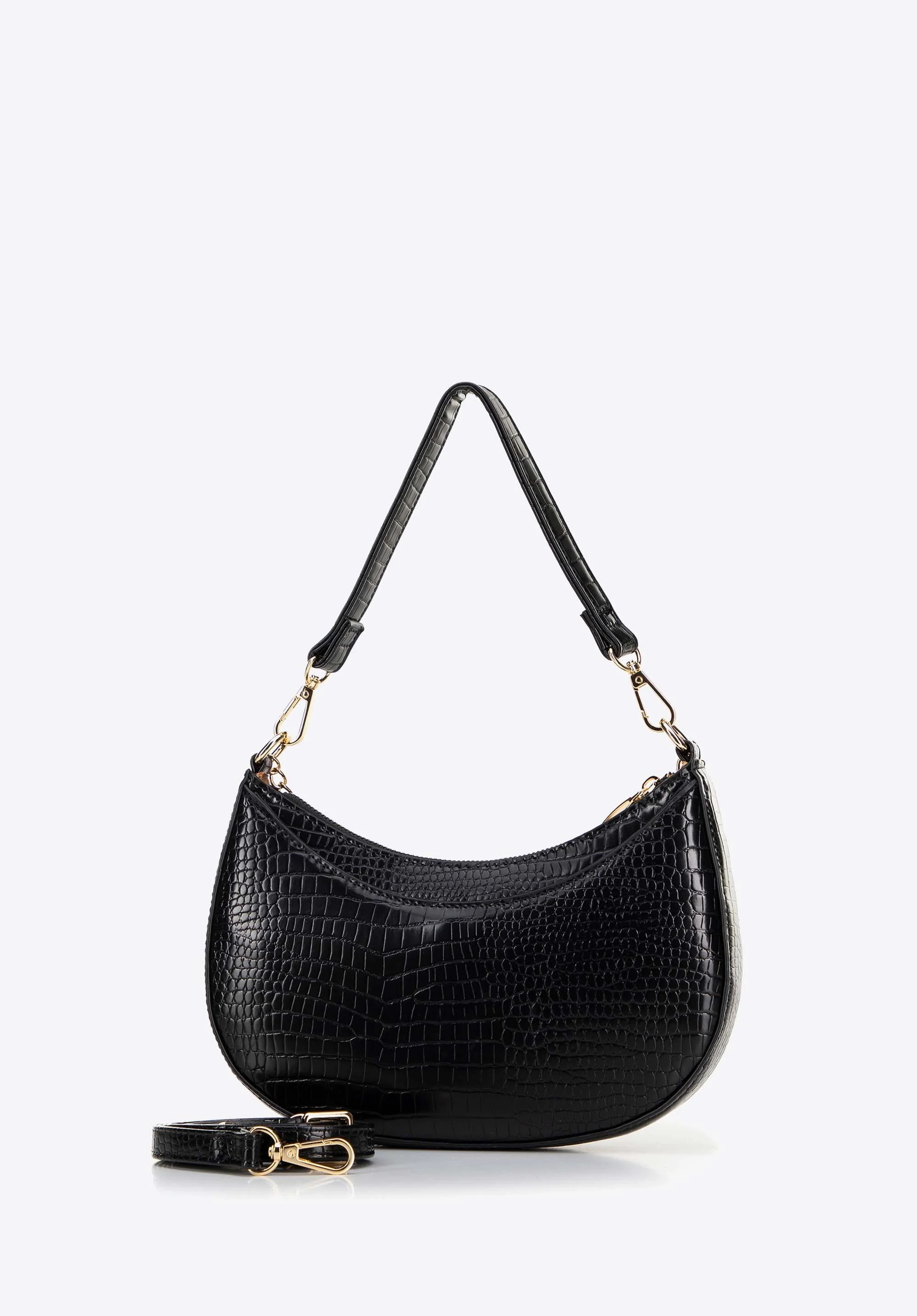 Podkreśl swój styl z elegancką torebką typu bagietka WITTCHEN 29-4Y-605-1G o wyjątkowej fakturze croco, która dodaje charakteru każdej stylizacji. Wykonana z trwałej, wysokiej jakości ekoskóry w kolorze klasycznej czerni, stanowi połączenie ponadczasowego designu z nutą współczesnych akcentów. Praktyczne wnętrze z kieszenią na zamek oraz dodatkową otwartą kieszonką, pozwala zorganizować niezbędne drobiazgi. Dyskretnie umieszczone logo producenta z przodu dodaje torebce prestiżu i wyrafinowania.