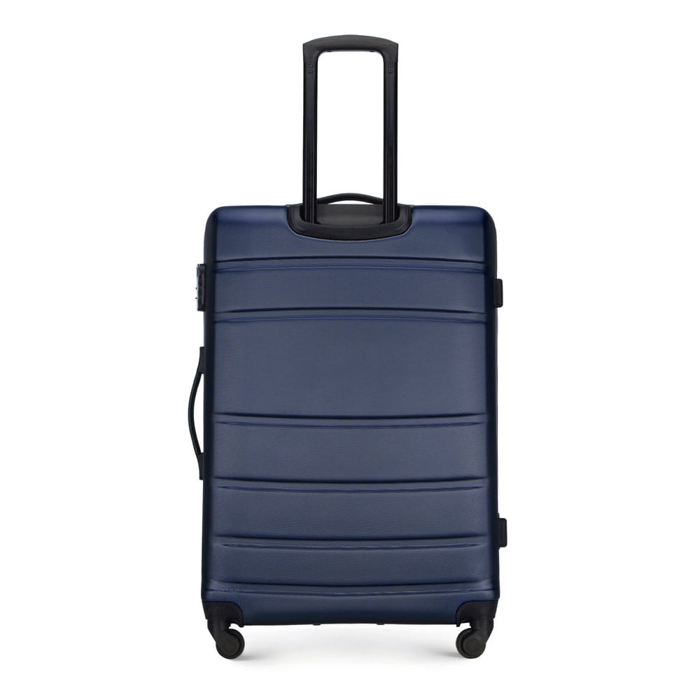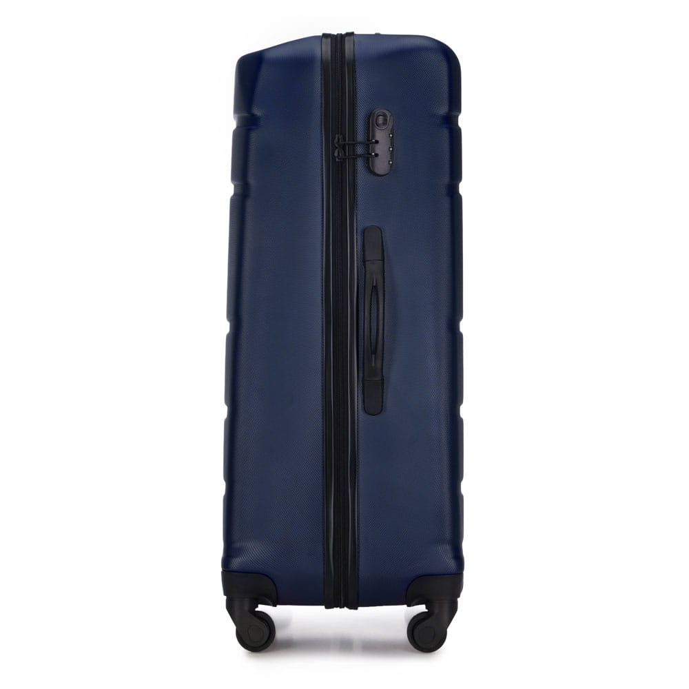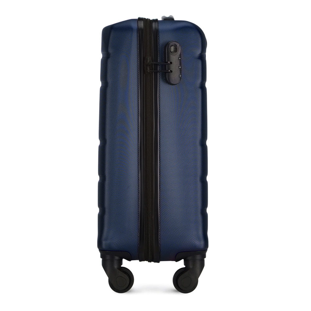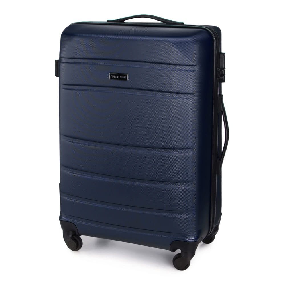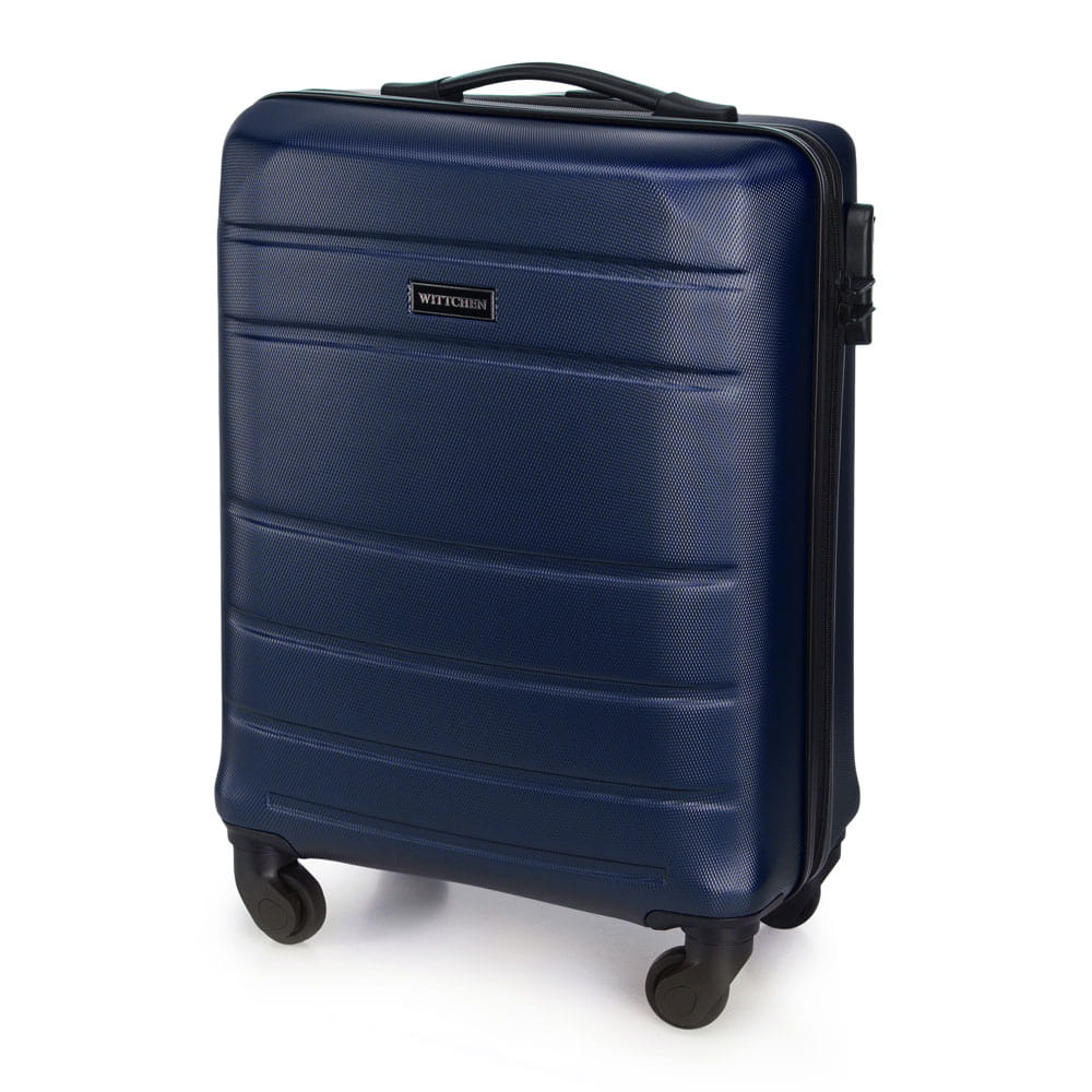 Komplet walizek WITTCHEN 56-3A-65S-90 z kolekcji Globe line w kolorze granatowym, wykonany został z bardzo trwałego tworzywa - ABS, które zapewnia skuteczną ochronę przewożonych rzeczy, a dzięki porowatej powierzchni jest jeszcze bardziej odporne na zarysowania. Walizka kabinowa spełnia wymogi bagażu podręcznego w liniach lotniczych: Easy Jet, LOT, Lufthansa, Wizz Air, Ryanair, Aeroflot. Każda walizka wyposażona jest w cztery obrotowe kółka ułatwiające manewrowanie, wysuwany uchwyt oraz 2 gumowe rączki (przy walizce małej rączka tylko na górze). Zabezpieczenie w postaci zamka szyfrowego, który uniemożliwia dostęp osobom niepożądanym do wnętrza to dodatkowy atut bagażu. Wewnątrz walizki posiadają komorę główną z elastycznymi pasami zabezpieczającymi bagaż przed przemieszczaniem, komorę zamykaną na zamek oraz 2 kieszenie zamykane na suwak, w tym jedną z siatki.