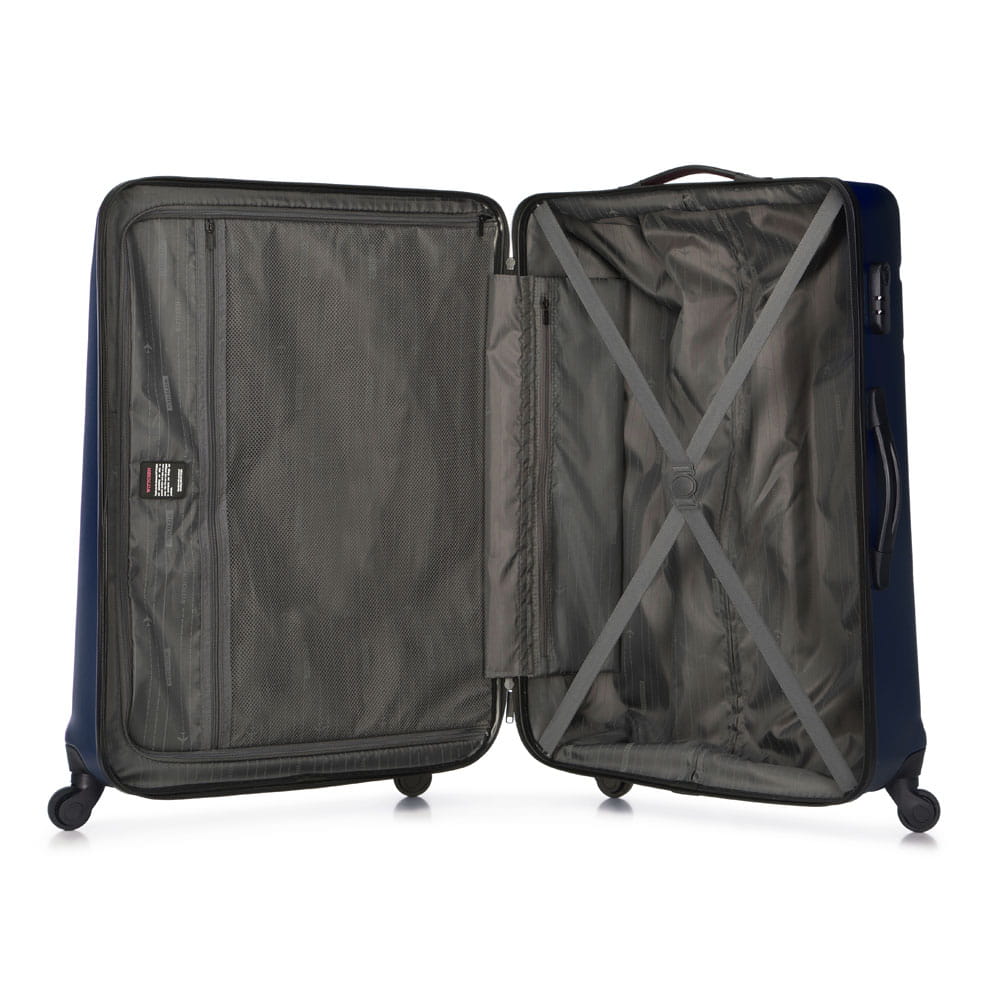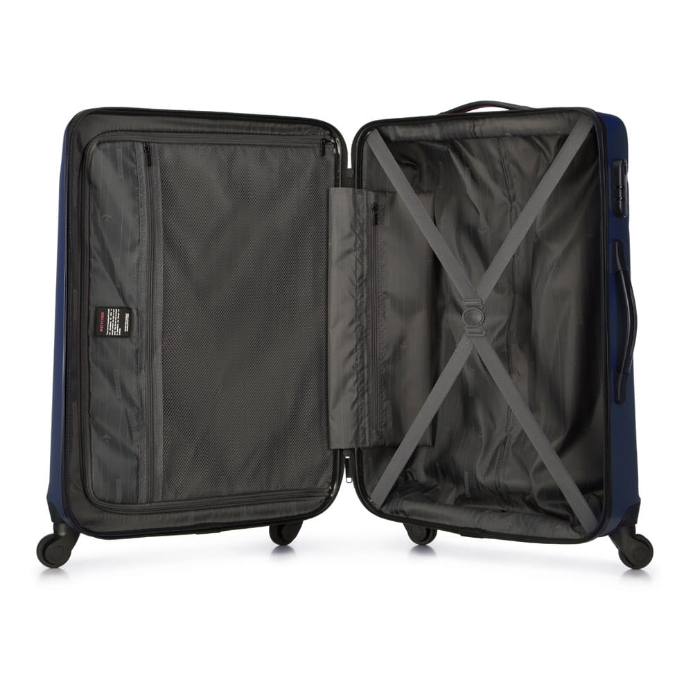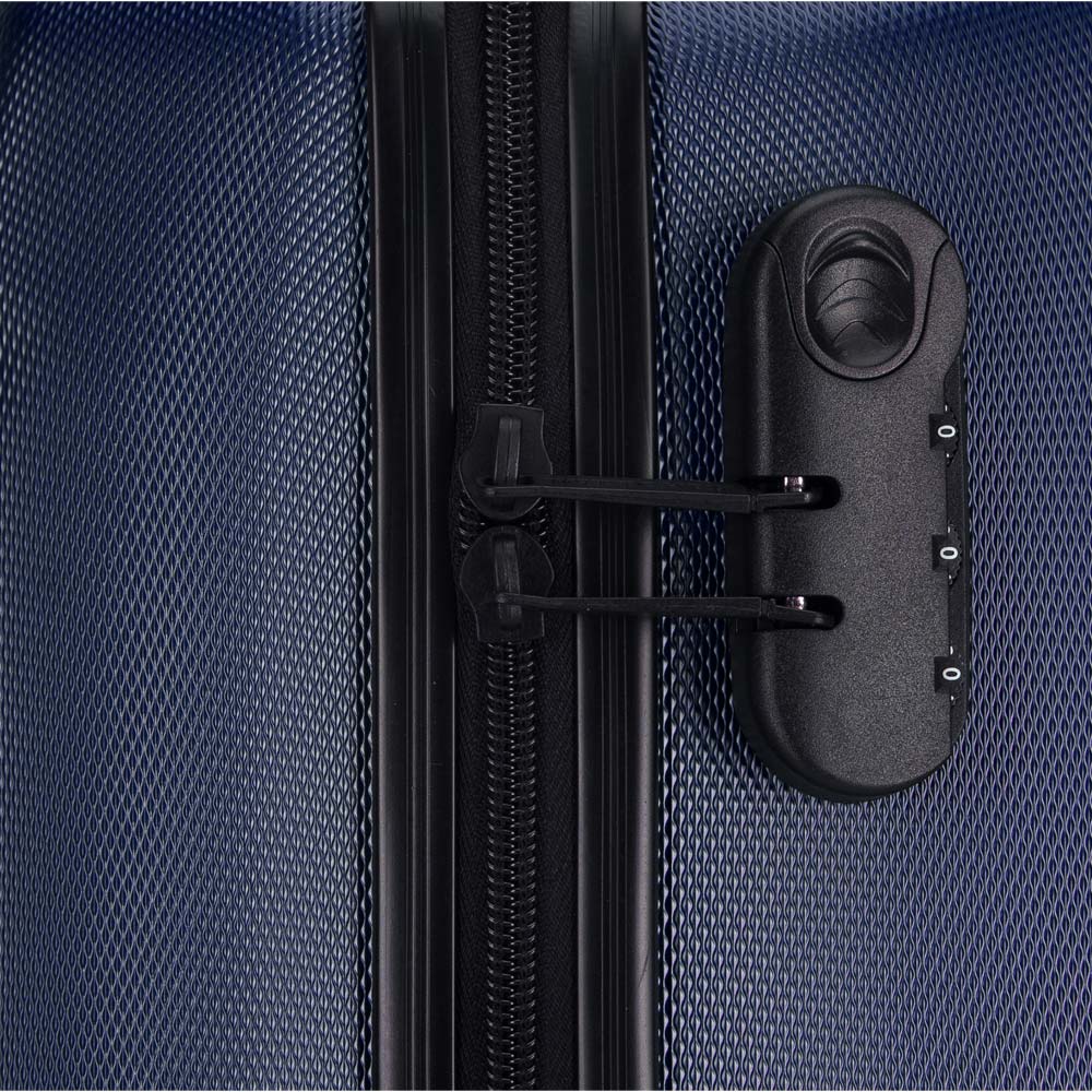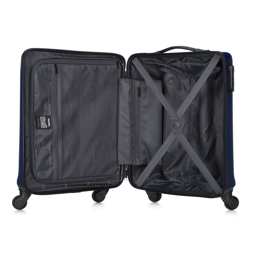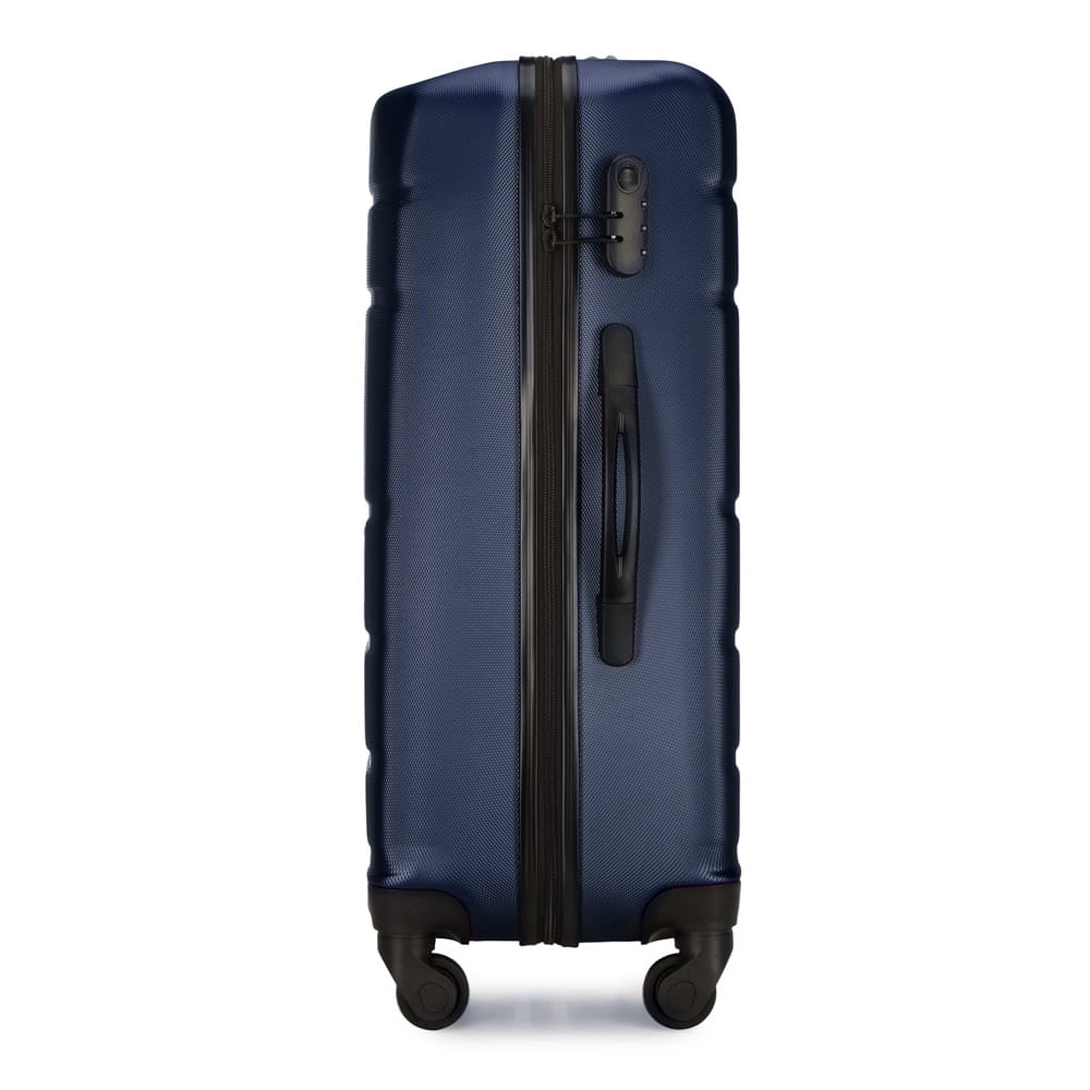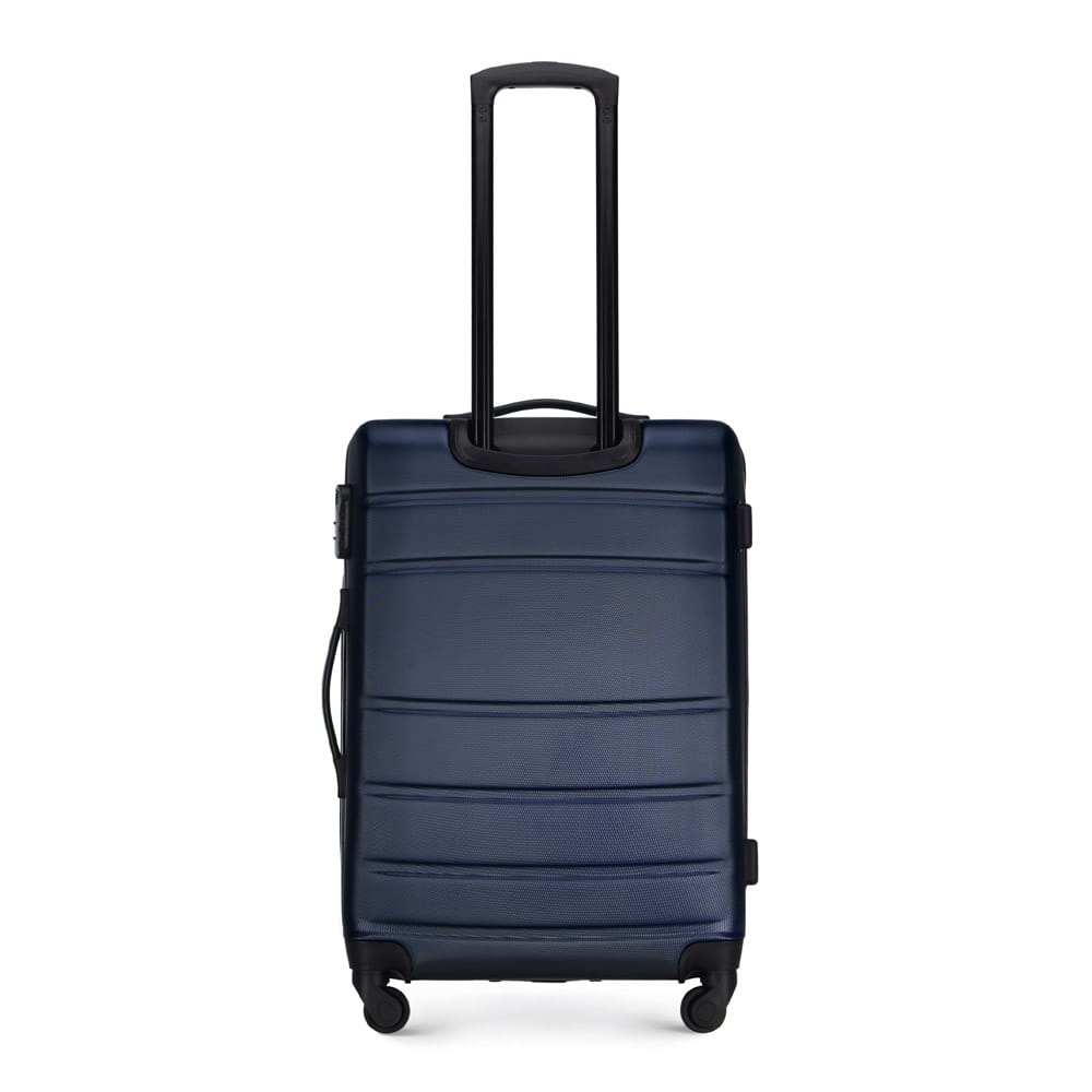 Komplet walizek WITTCHEN 56-3A-65S-90 z kolekcji Globe line w kolorze granatowym, wykonany został z bardzo trwałego tworzywa - ABS, które zapewnia skuteczną ochronę przewożonych rzeczy, a dzięki porowatej powierzchni jest jeszcze bardziej odporne na zarysowania. Walizka kabinowa spełnia wymogi bagażu podręcznego w liniach lotniczych: Easy Jet, LOT, Lufthansa, Wizz Air, Ryanair, Aeroflot. Każda walizka wyposażona jest w cztery obrotowe kółka ułatwiające manewrowanie, wysuwany uchwyt oraz 2 gumowe rączki (przy walizce małej rączka tylko na górze). Zabezpieczenie w postaci zamka szyfrowego, który uniemożliwia dostęp osobom niepożądanym do wnętrza to dodatkowy atut bagażu. Wewnątrz walizki posiadają komorę główną z elastycznymi pasami zabezpieczającymi bagaż przed przemieszczaniem, komorę zamykaną na zamek oraz 2 kieszenie zamykane na suwak, w tym jedną z siatki.